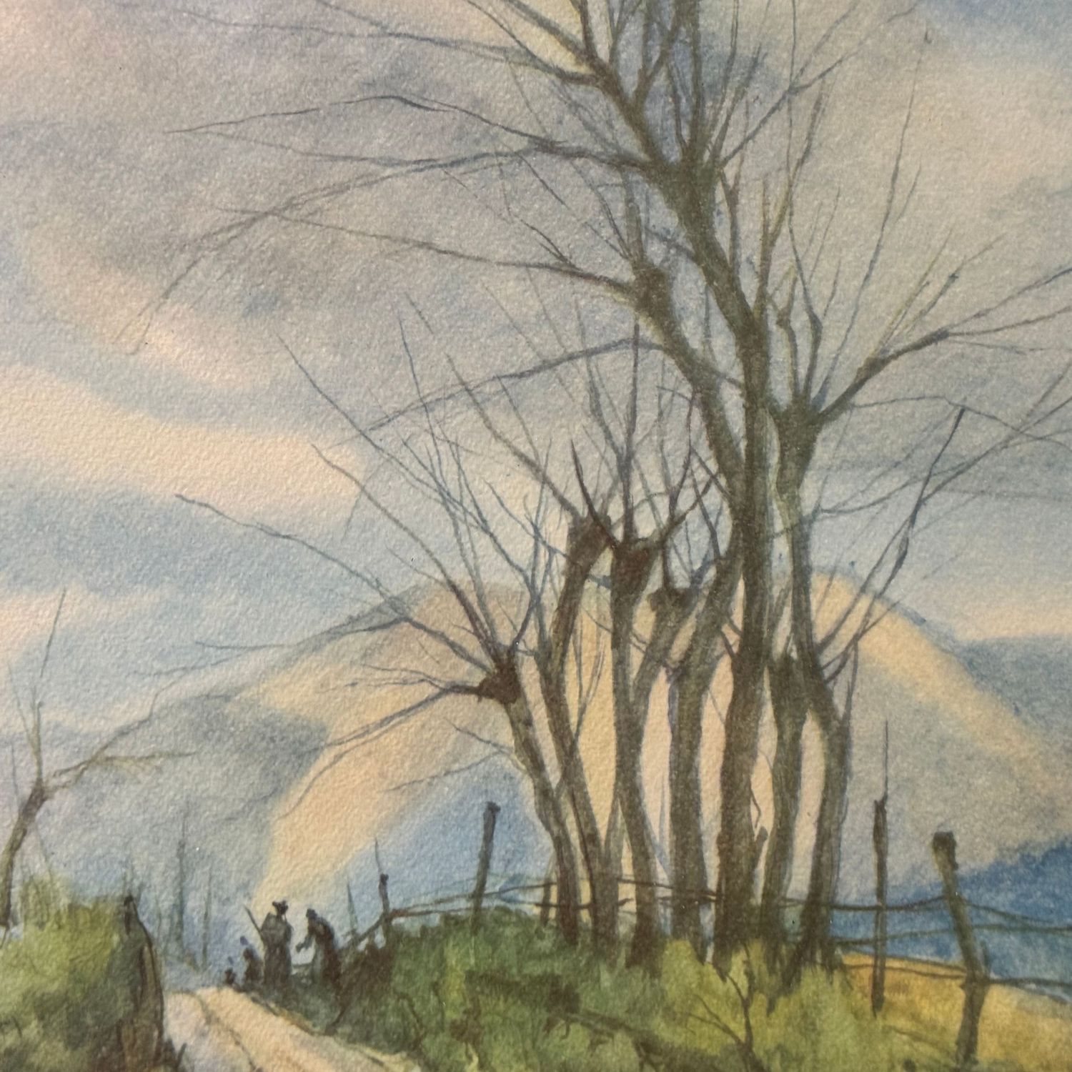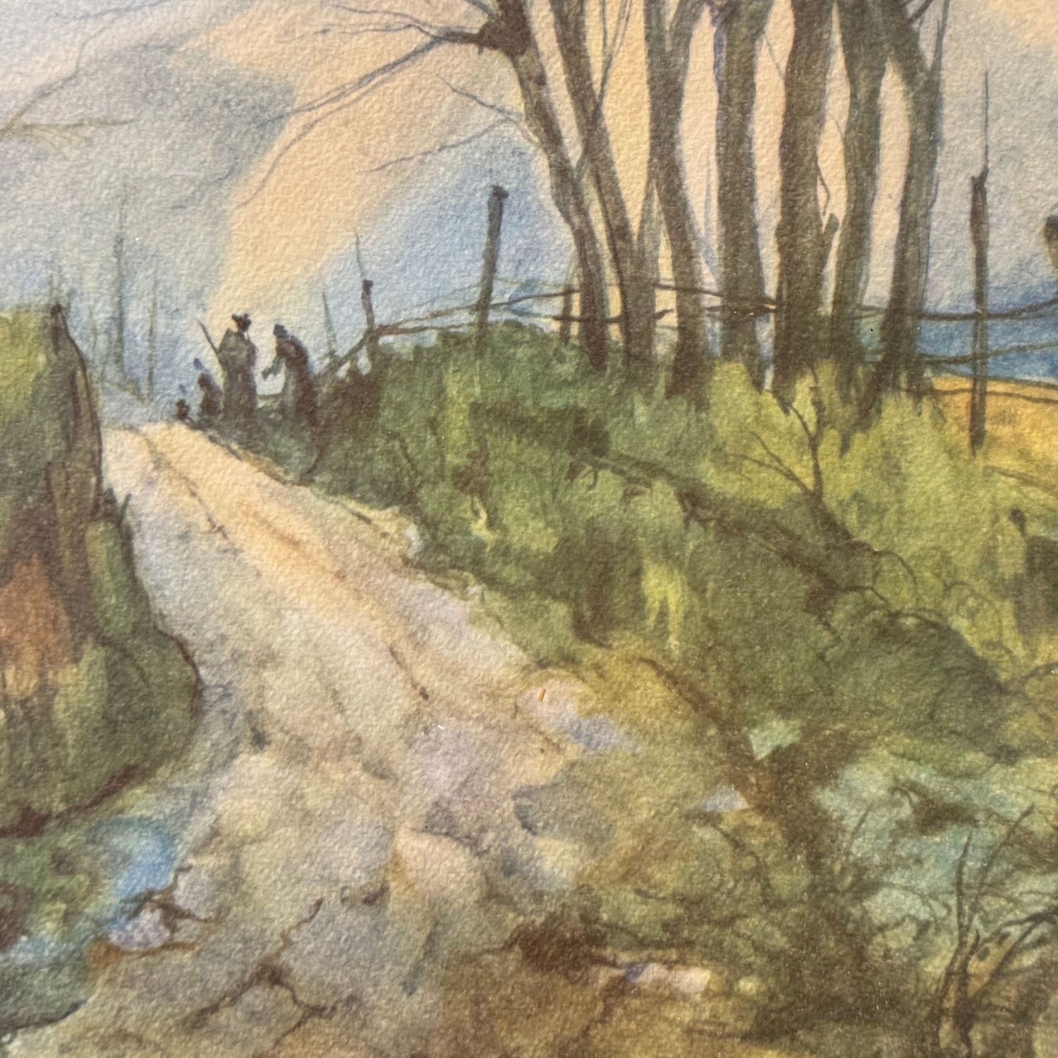 Dipinto acquerello su carta, periodo XX secolo scuola Europea, raffigurante Paesaggio (luogo imprecisato).