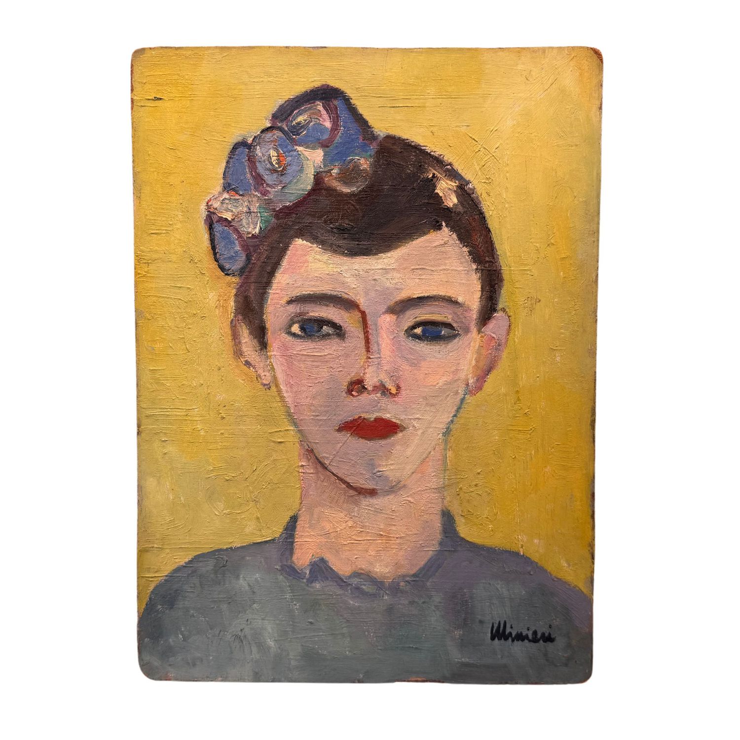 Dipinto olio su pannello, periodo XX secolo scuola Italiana, raffigurante Ritratto di giovane donna.