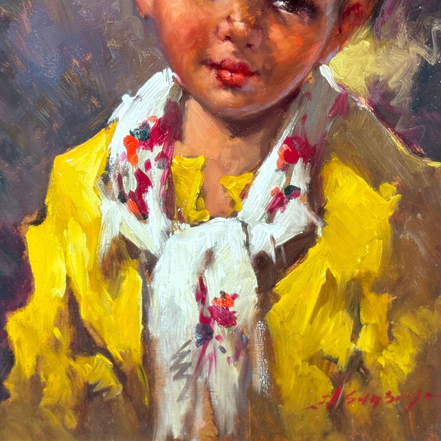 Dipinto olio su pannello, periodo XX secolo scuola italiana, raffigurante Ritratto di bambino.