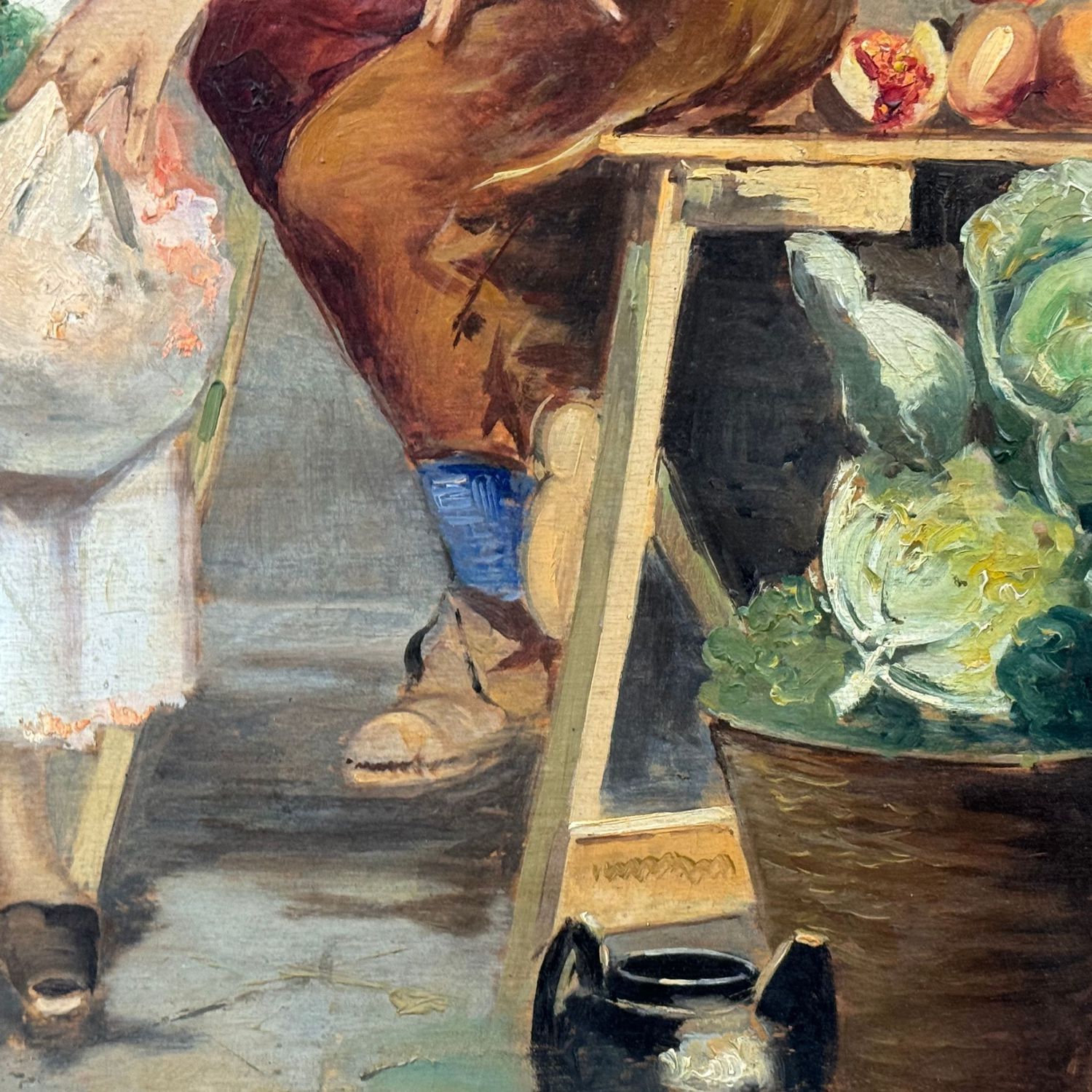 Dipinto olio su tavola, periodo XX secolo scuola Italiana, raffigurante La venditrice di frutta.