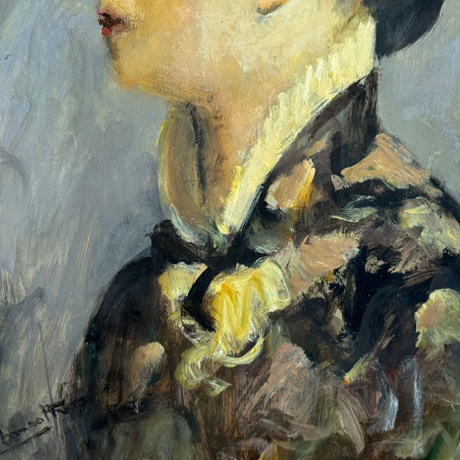 Dipinto olio su tavola, periodo XX secolo scuola Italiana, raffigurante Profilo di donna.