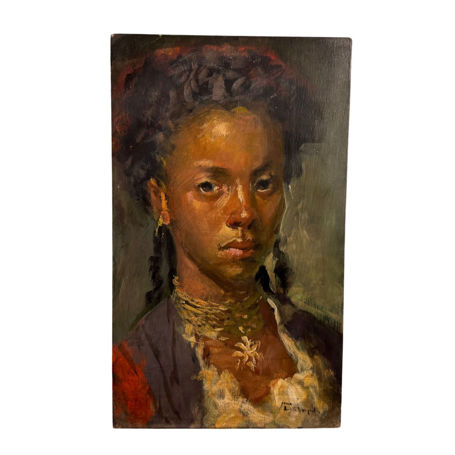 Dipinto olio su tavola, periodo XX secolo scuola Italiana, raffigurante Ritratto di giovane donna.