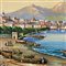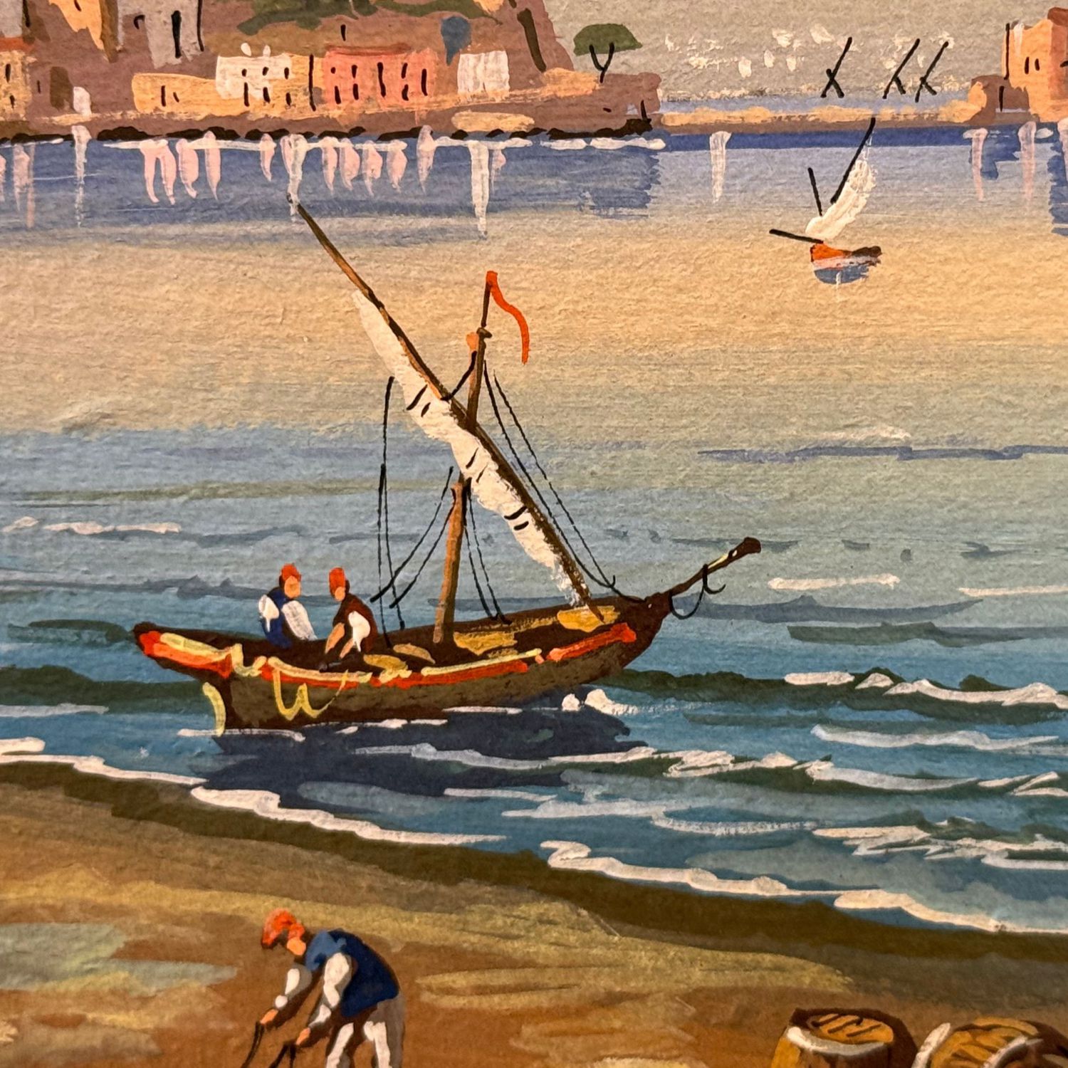 Dipinto guazzo (tempera su carta), periodo XX secolo scuola Italiana, raffigurante Napoli da Mergellina.