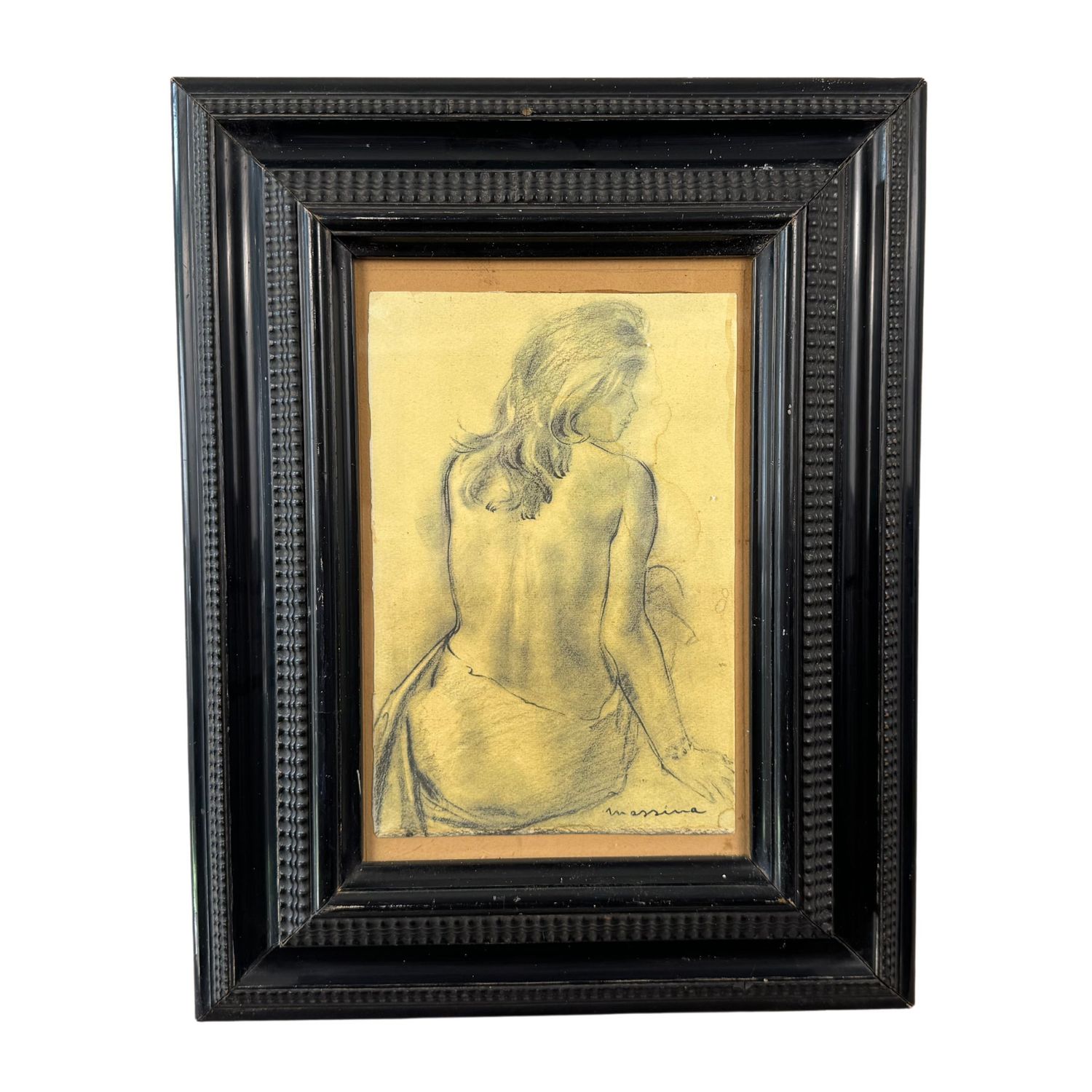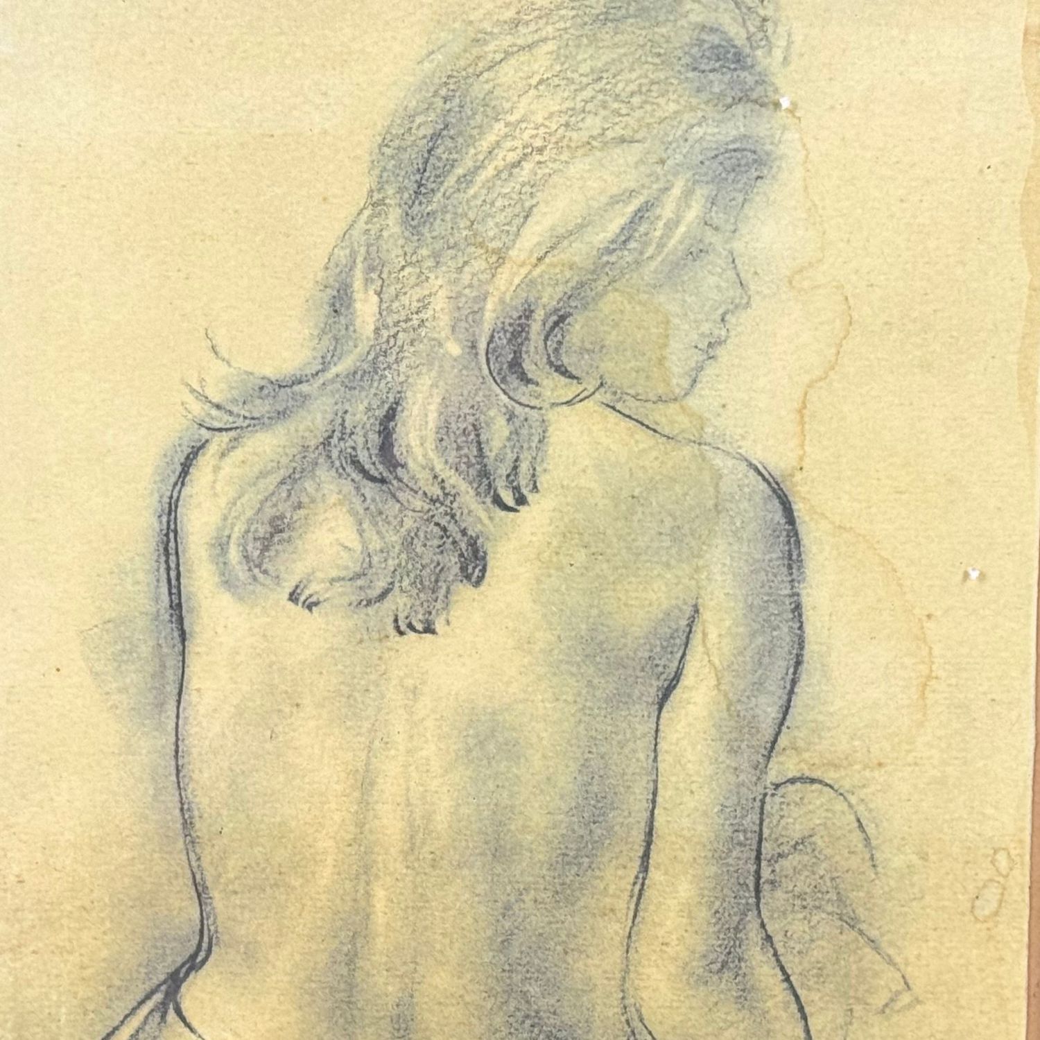 Disegno su carta, periodo XX secolo scuola Italiana, raffigurante Ritratto di donna di schiena.