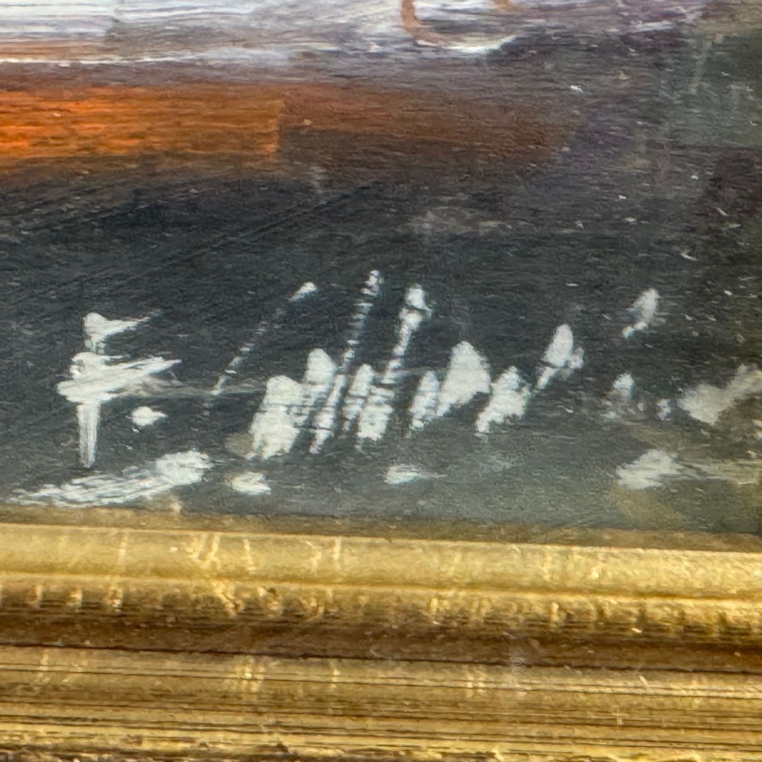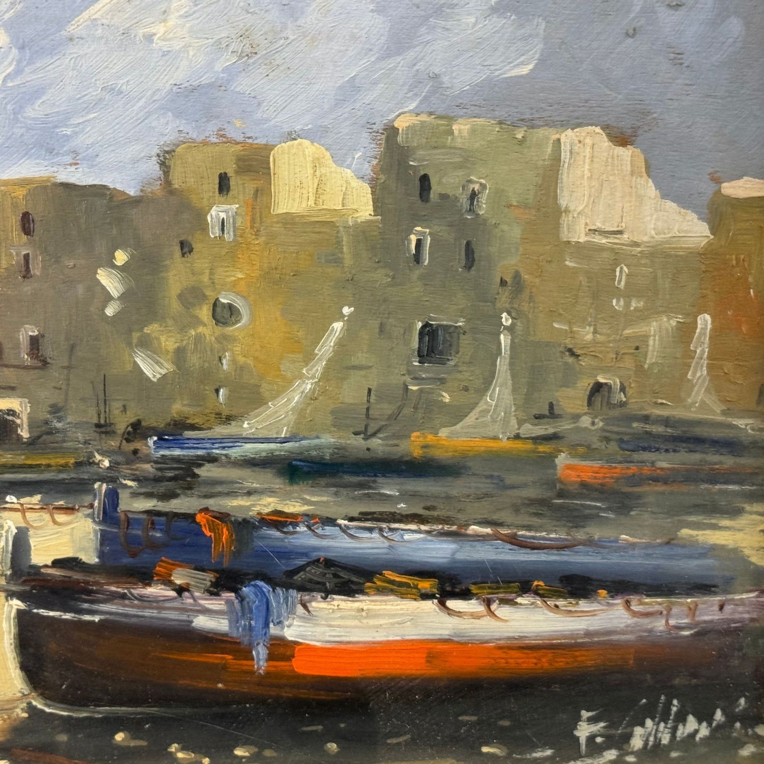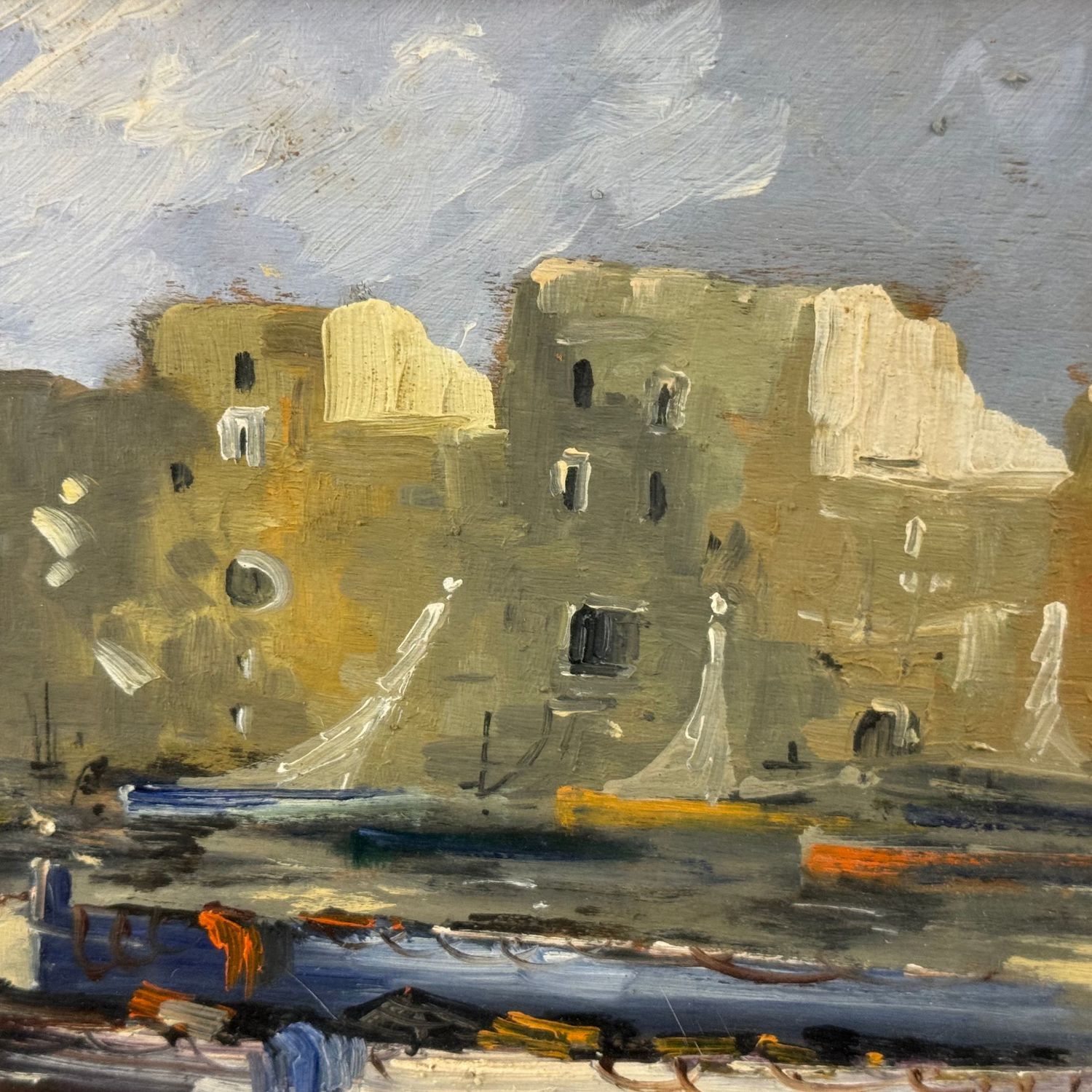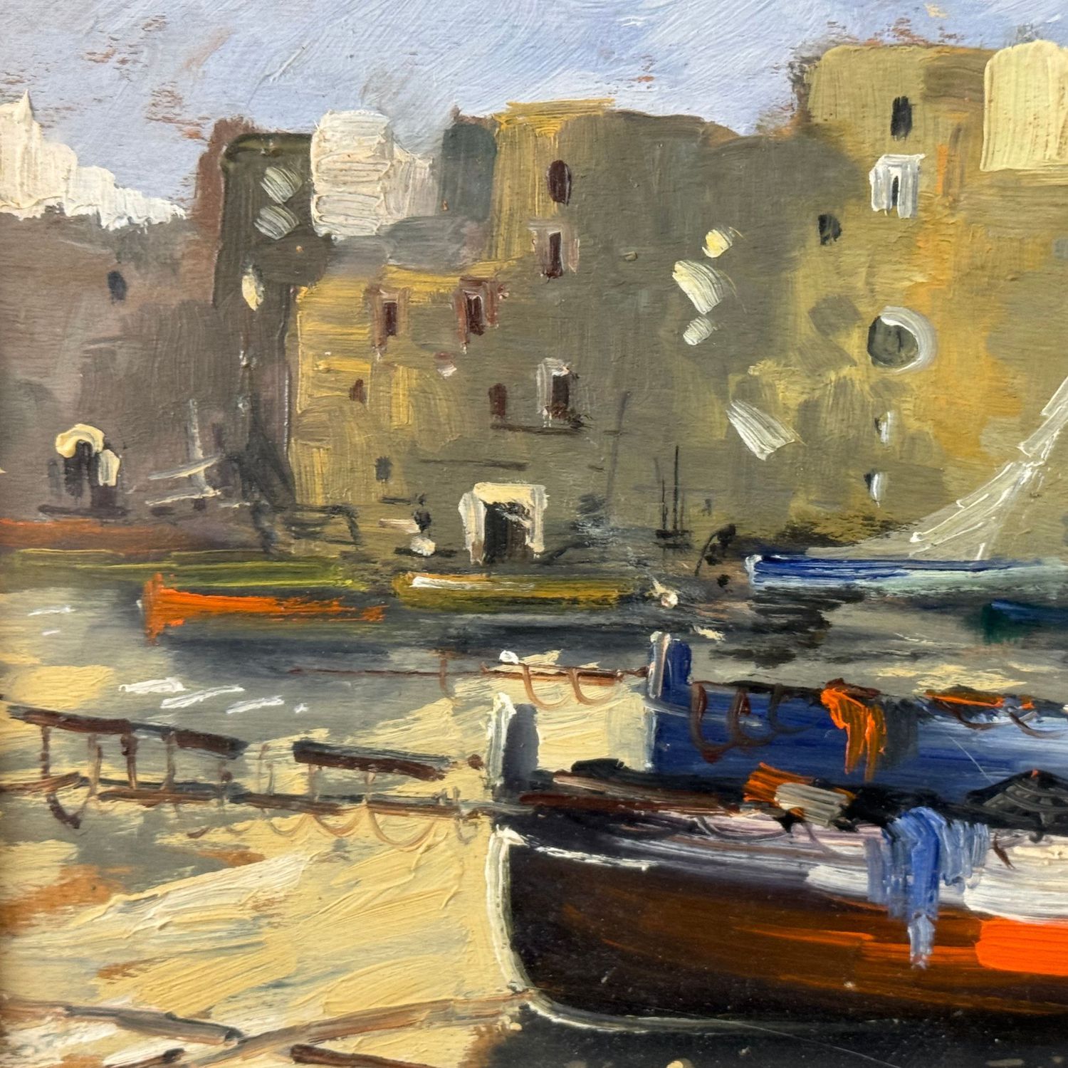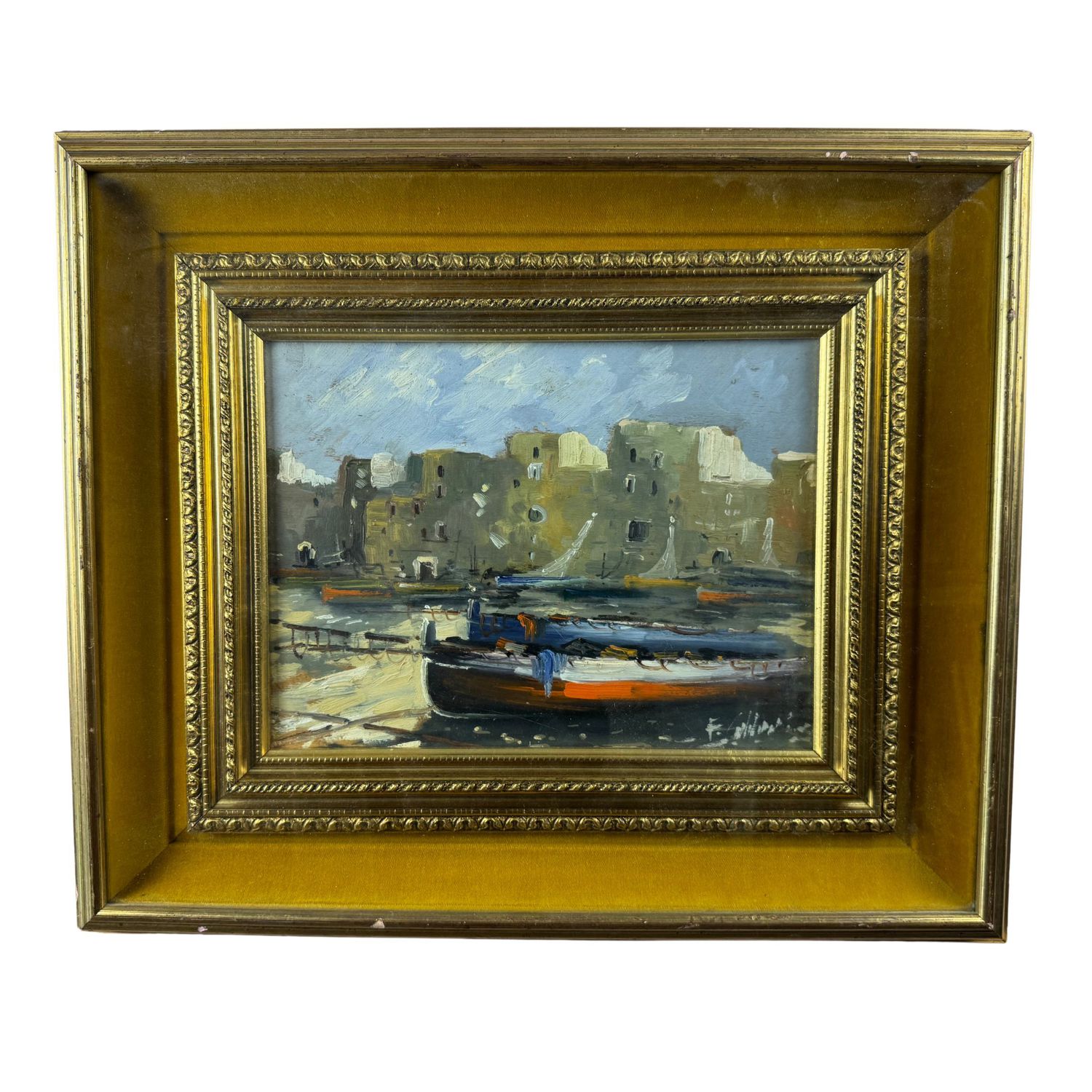 Dipinto olio su tavola, periodo XX secolo scuola Italiana, raffigurante Marina. Dimensioni interno cornice: 32x25 cm. Dimensioni compreso cornice: 54x46 cm. Reca firma in basso a destra non identificata. Opera in buone condizioni.