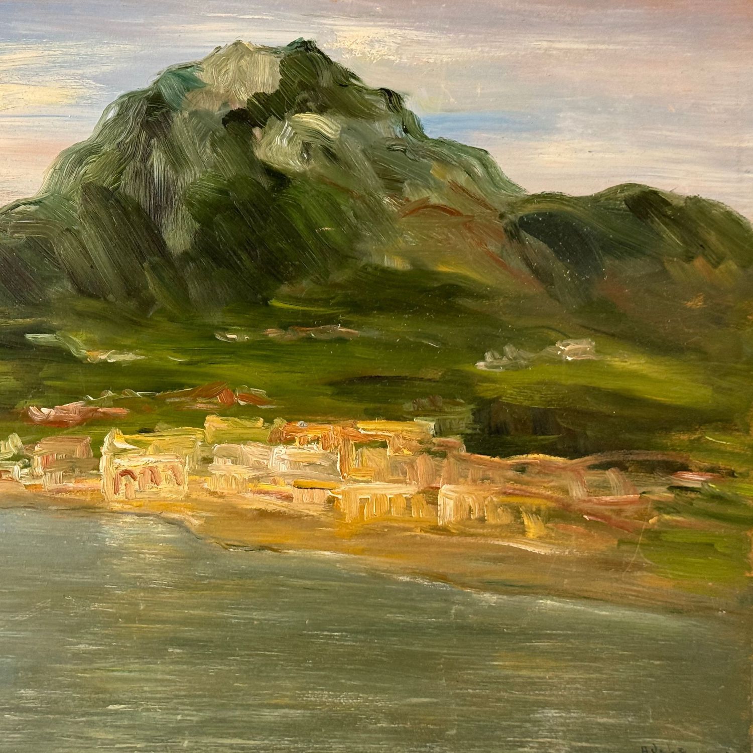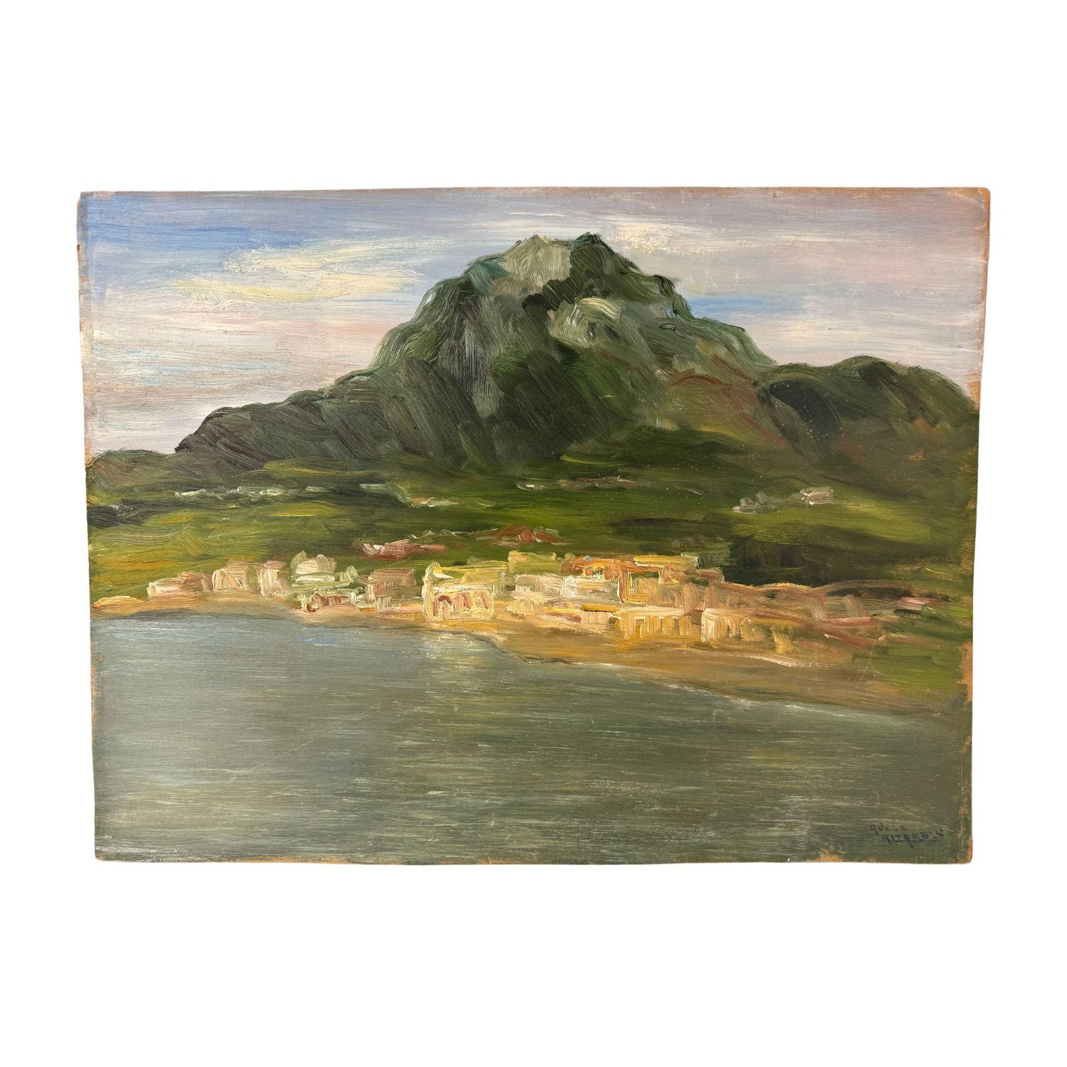 Dipinto olio su tavola, periodo XX secolo scuola Italiana, raffigurante Paesaggio. Dimensioni: 60x45 cm. Reca firma in basso a destra non identificata. Opera in buone condizioni.