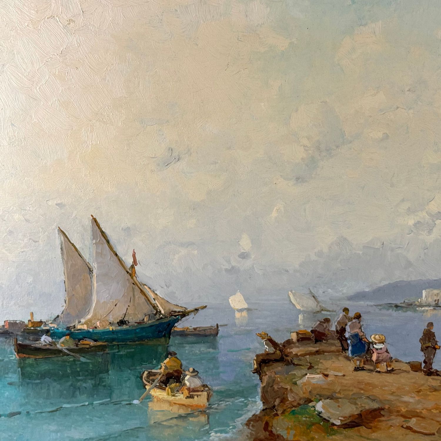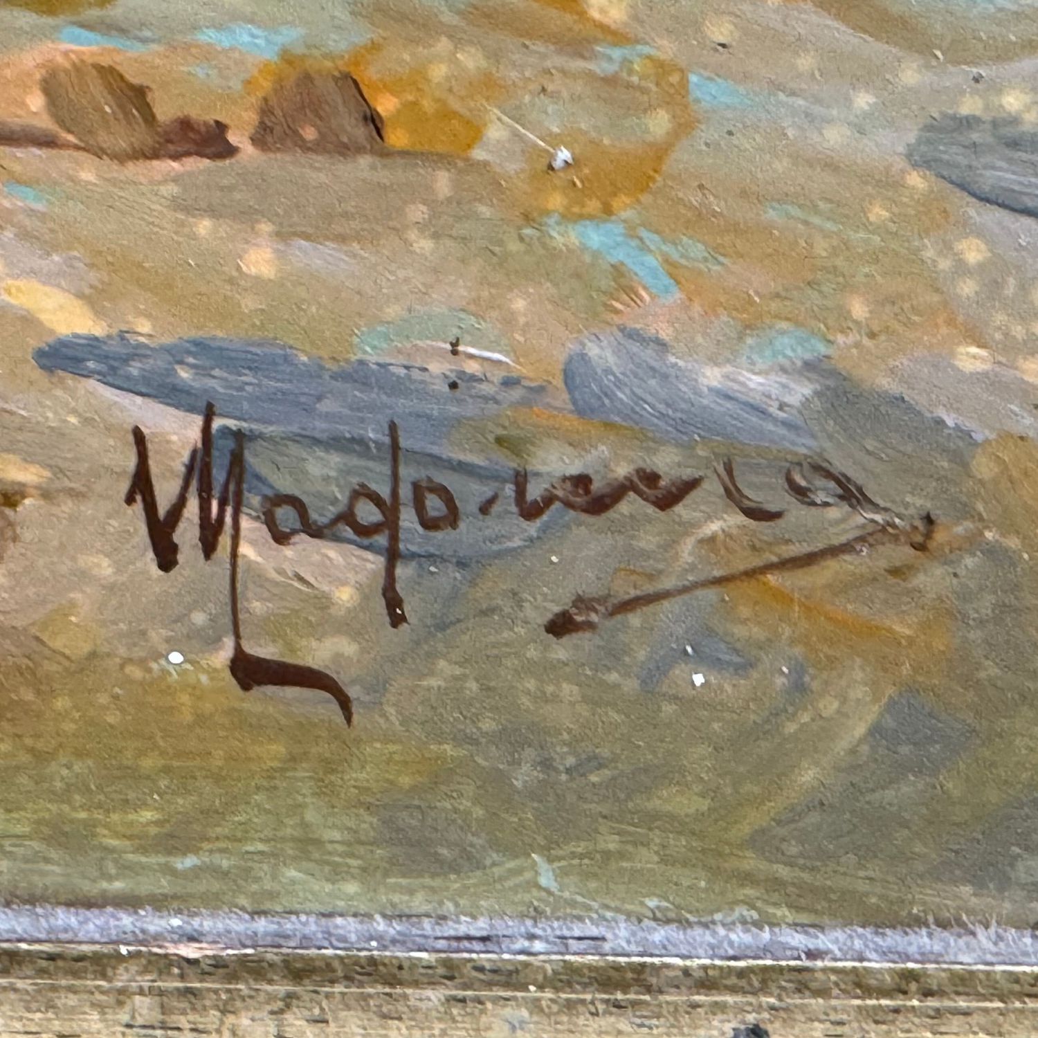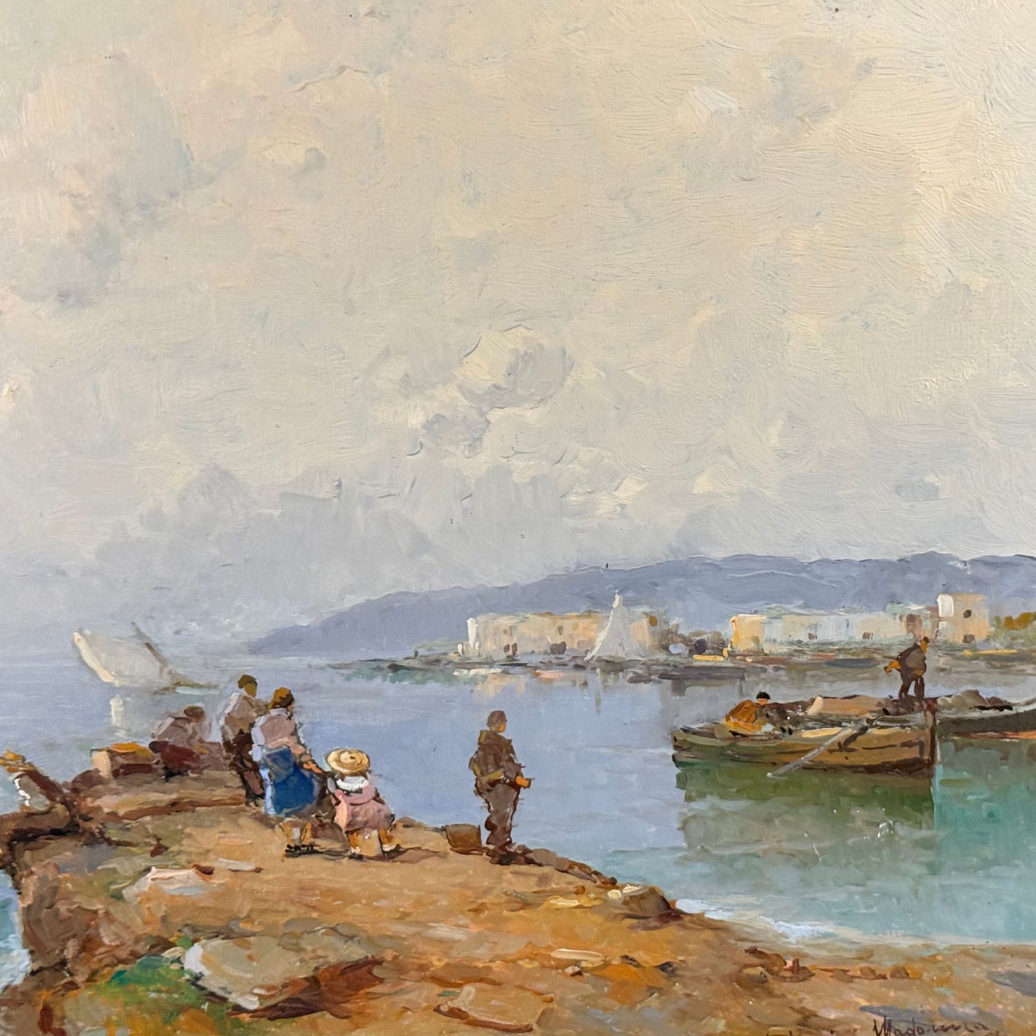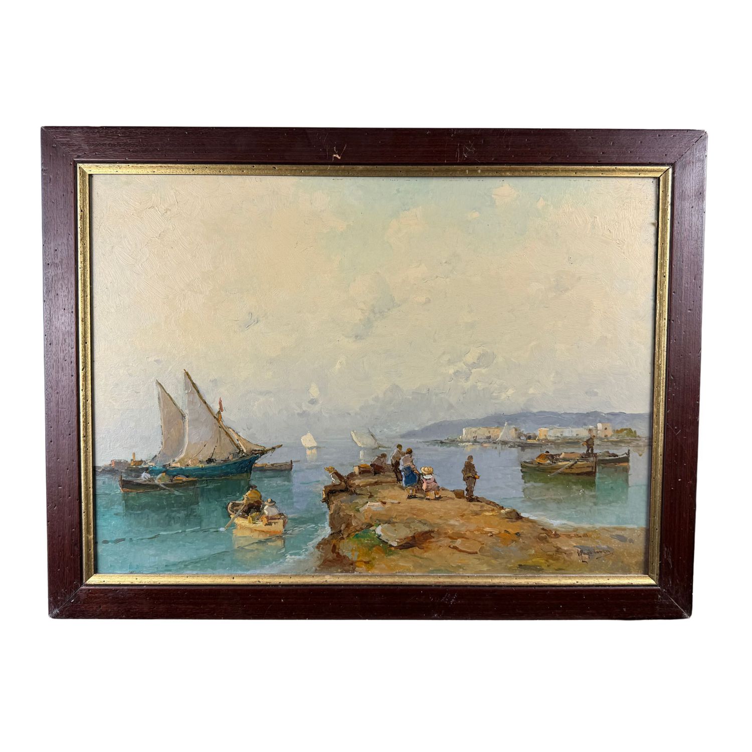 Dipinto olio su pannello, periodo XX secolo scuola italiana, raffigurante Marina. Dimensioni interno cornice: 50x70 cm. Dimensioni compreso cornice: 81x61 cm. Reca firma in basso a destra da Antonio Madonna. Opera in buone condizioni.