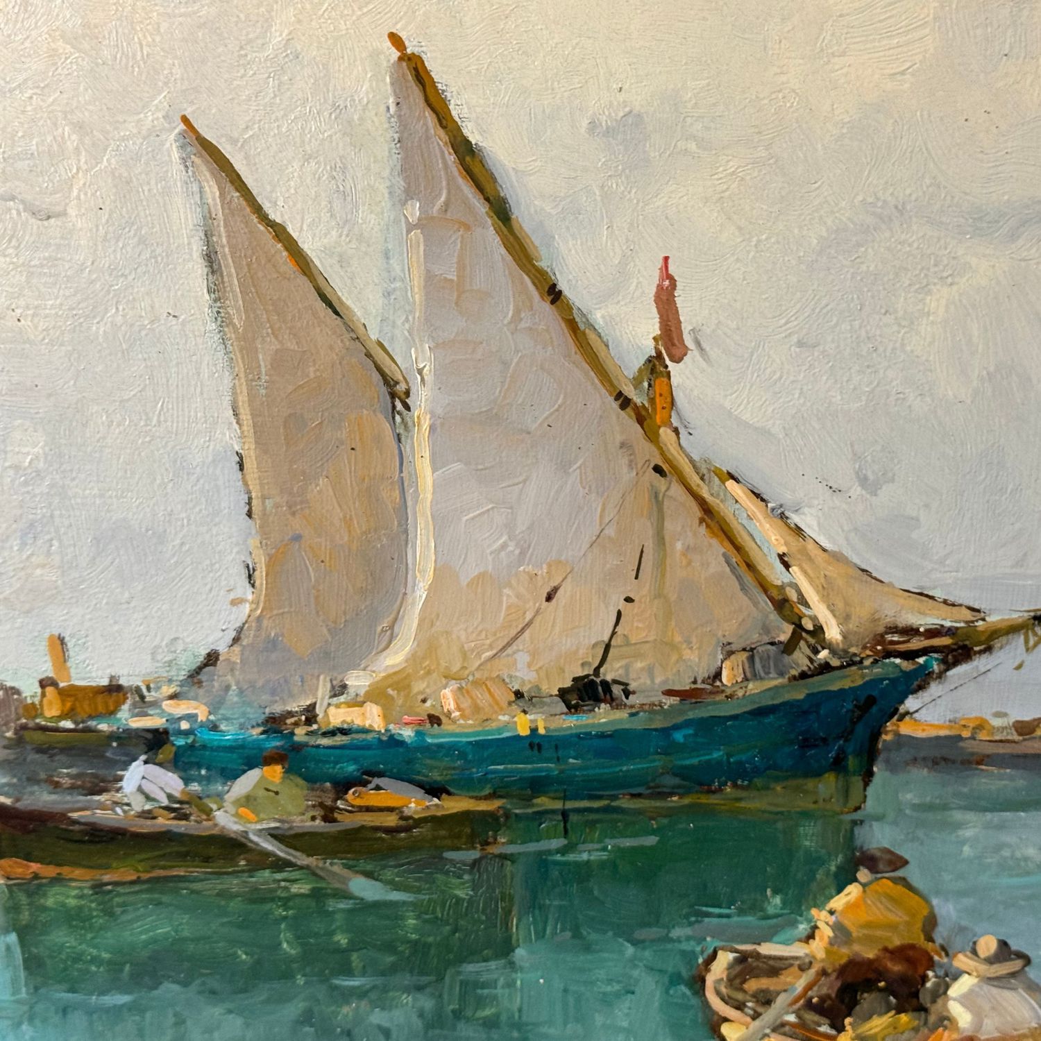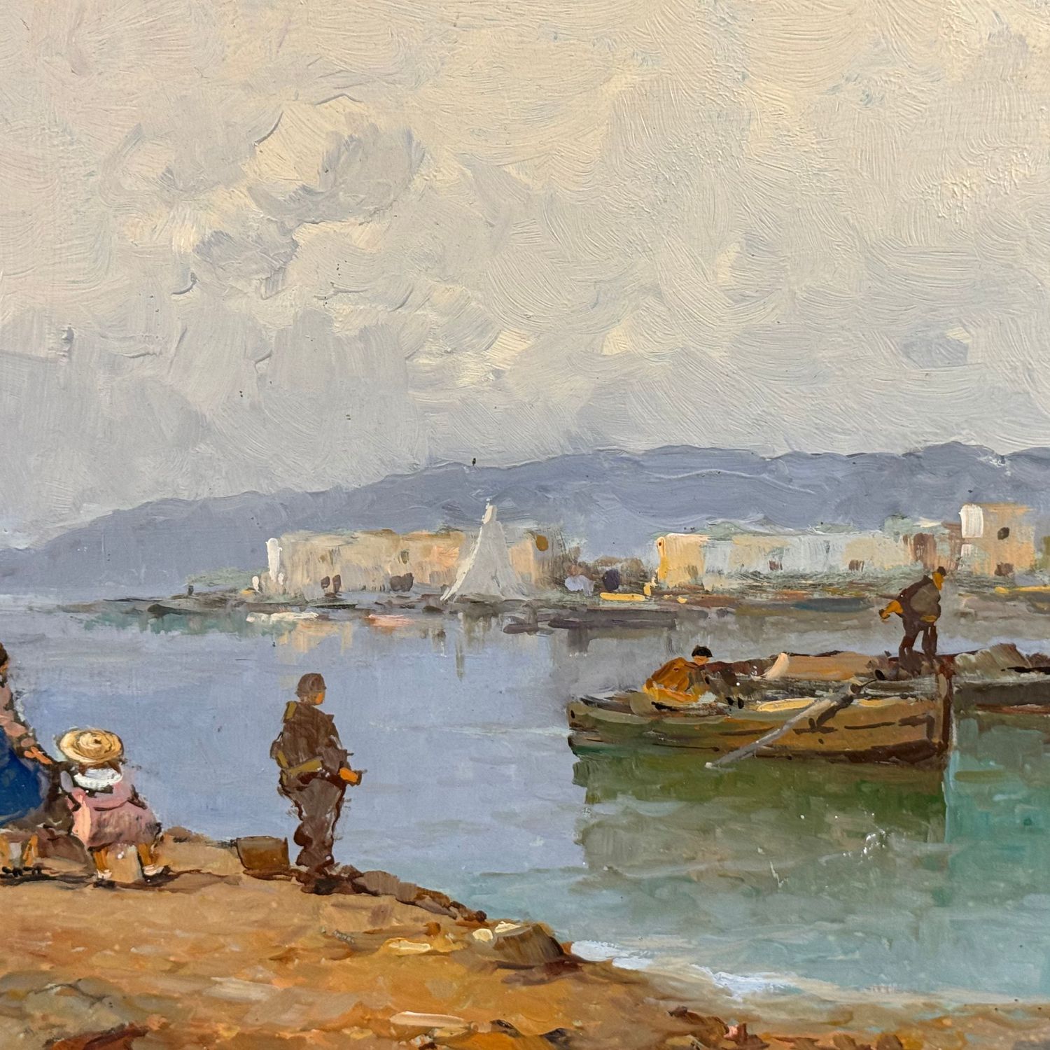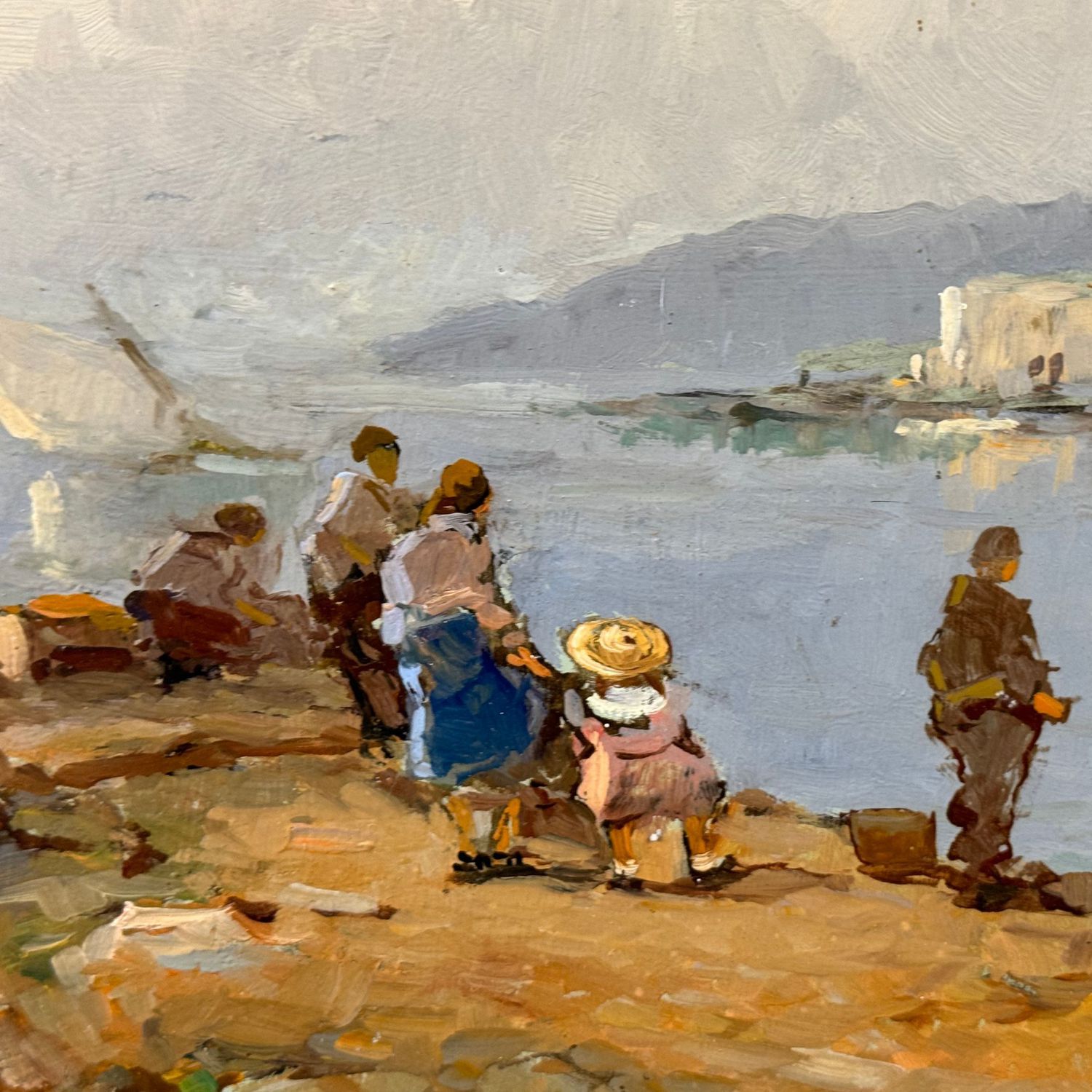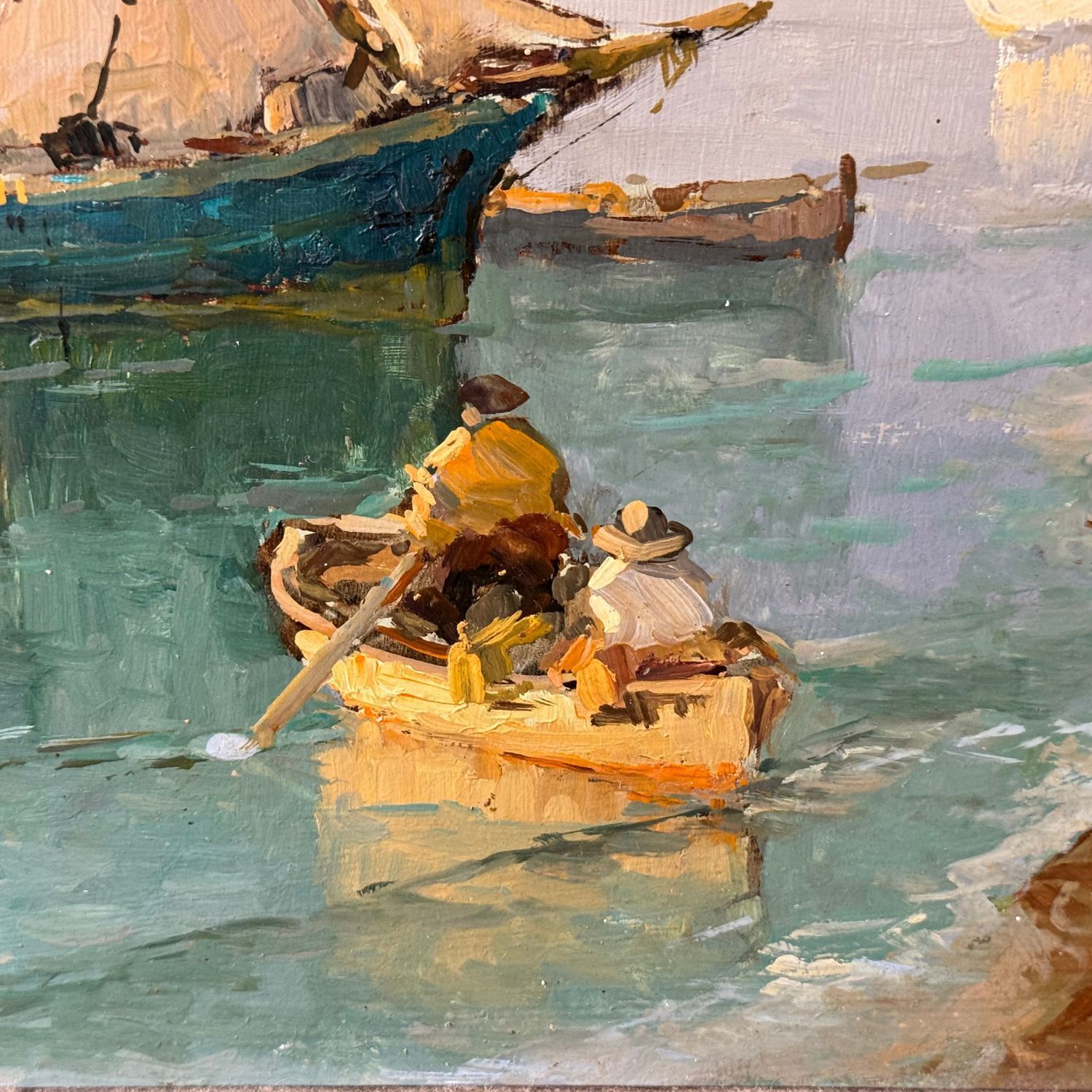 Dipinto olio su pannello, periodo XX secolo scuola italiana, raffigurante Marina. Dimensioni interno cornice: 50x70 cm. Dimensioni compreso cornice: 81x61 cm. Reca firma in basso a destra da Antonio Madonna. Opera in buone condizioni.