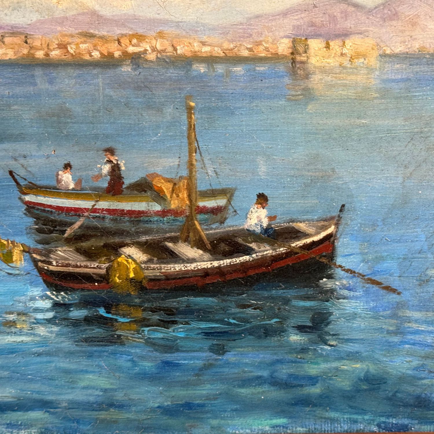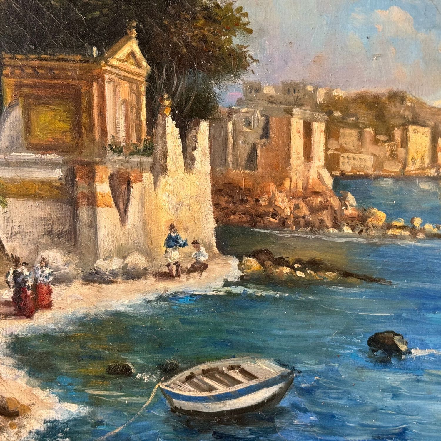Dipinto olio su tela, periodo XX secolo scuola Italiana, raffigurante Scorcio di marina napoletana. Dimensioni interno cornice: 62x36 cm. Dimensioni compreso cornice:71x45 cm. Da artista anonimo. Opera in buone condizioni.