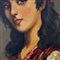 Dipinto olio su tavola, periodo XX secolo scuola italiana, raffigurante Ritratto di donna. Dimensioni: 30x46 cm. Reca firma in basso a destra di difficile lettura. Opera in buone condizioni.