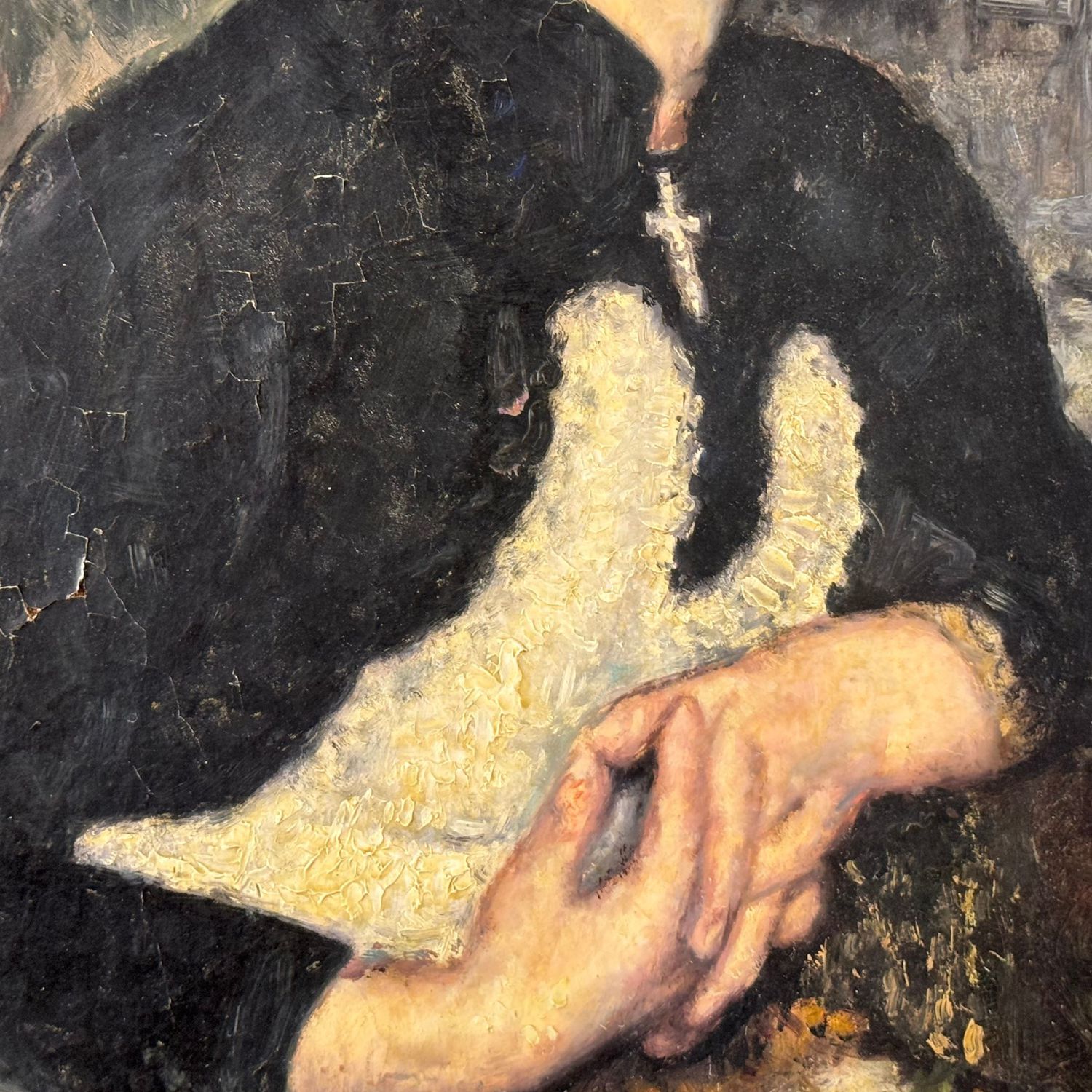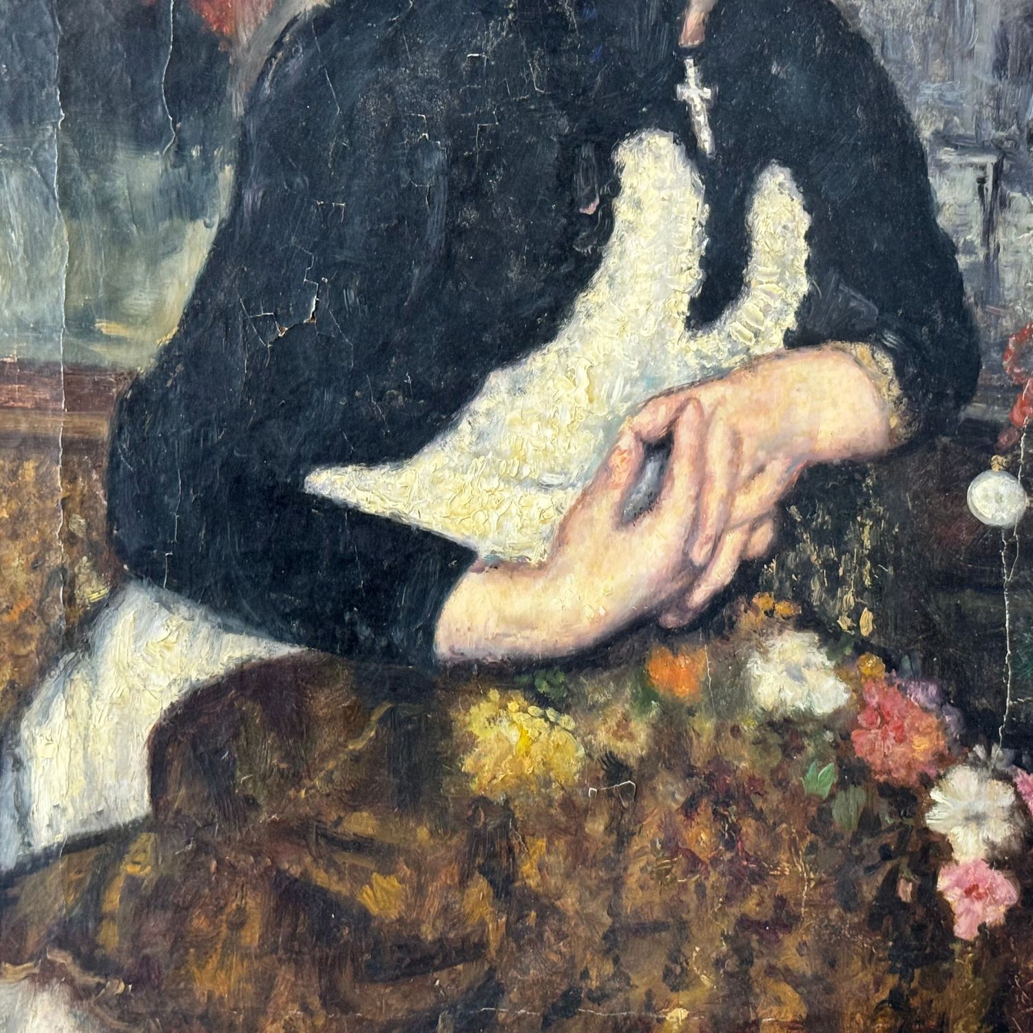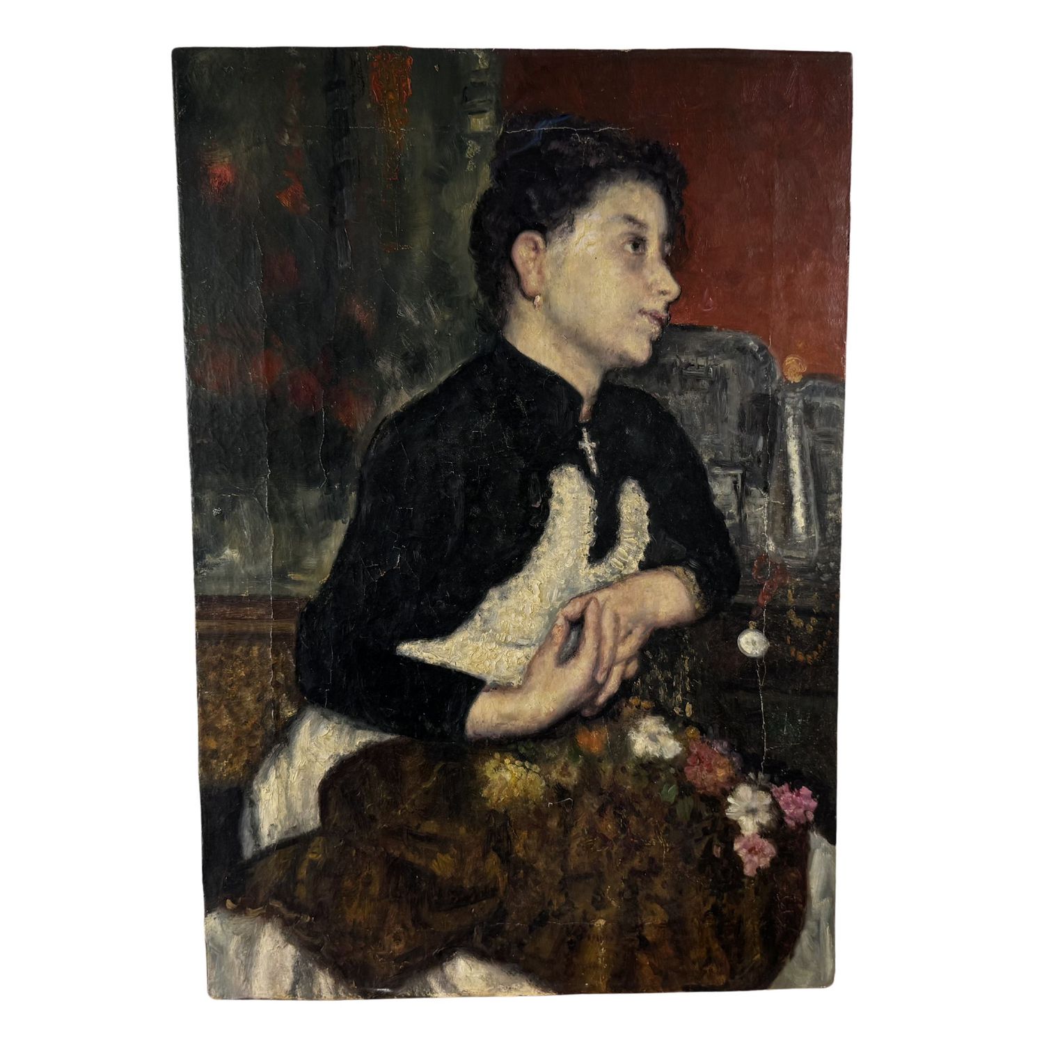 Dipinto olio su tela, periodo XX secolo scuola italiana, raffigurante Ritratto di donna, tratto da un'opera di Antonio Mancini. Dimensioni: 45x66 cm. Da artista anonimo. Opera in discrete condizioni come da foto allegate.