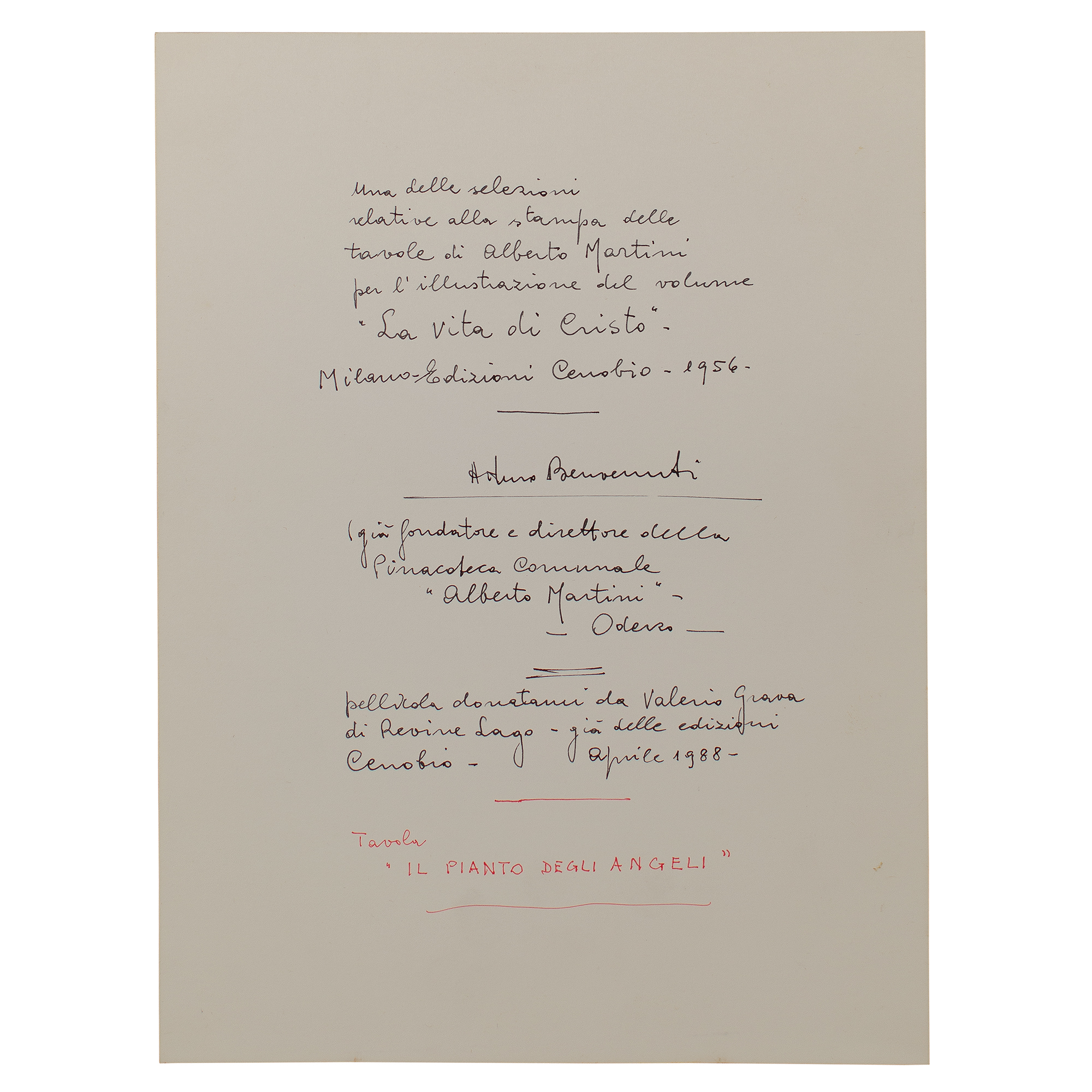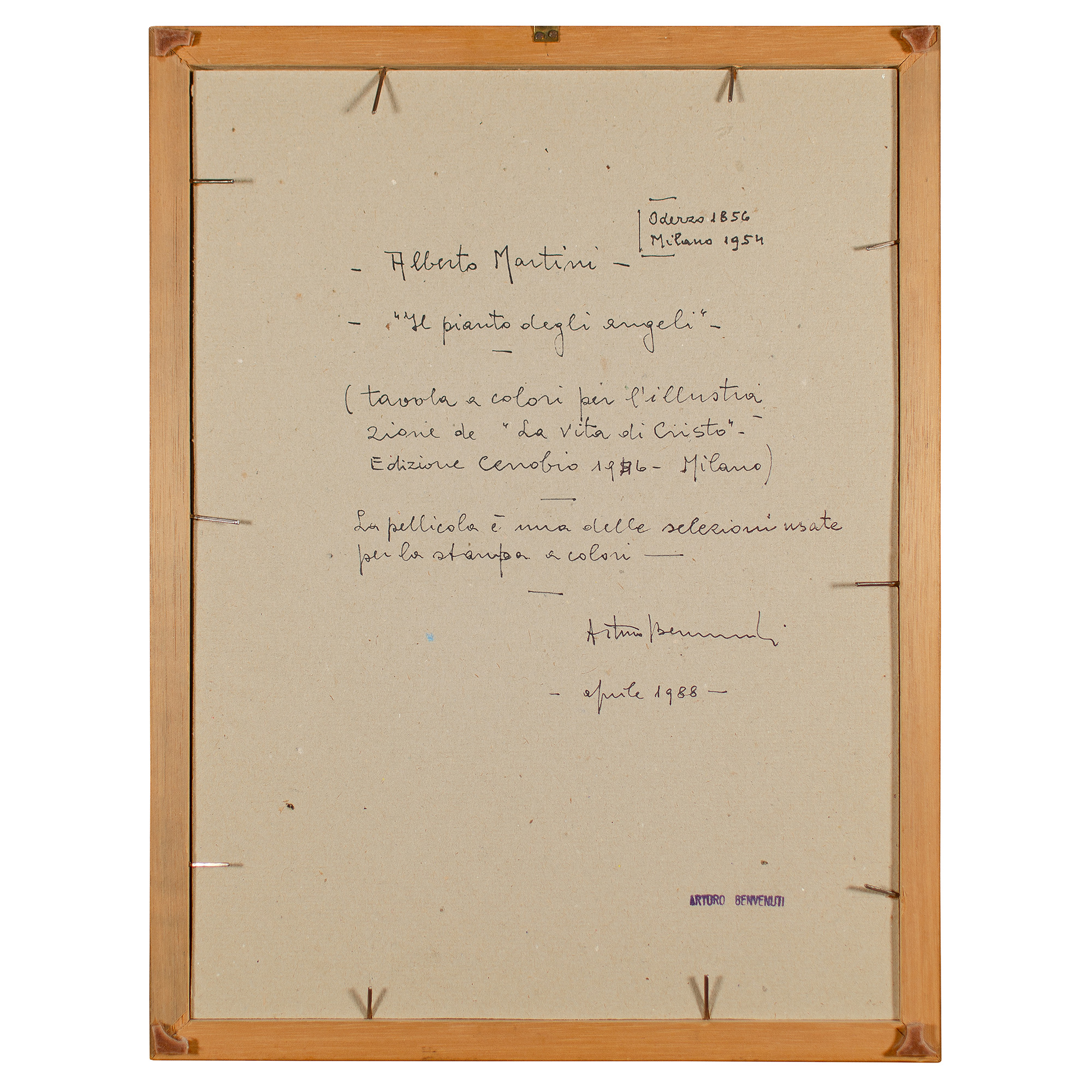 L’opera costituisce una delle selezioni utilizzate per la stampa del volume: La vita di Cristo, di Alberto Martini, Edizioni Cenobio, Milano 1946. Il disegno è custodito presso la Pinacoteca Civica Alberto Martini a Oderzo (n. inv. 391).
