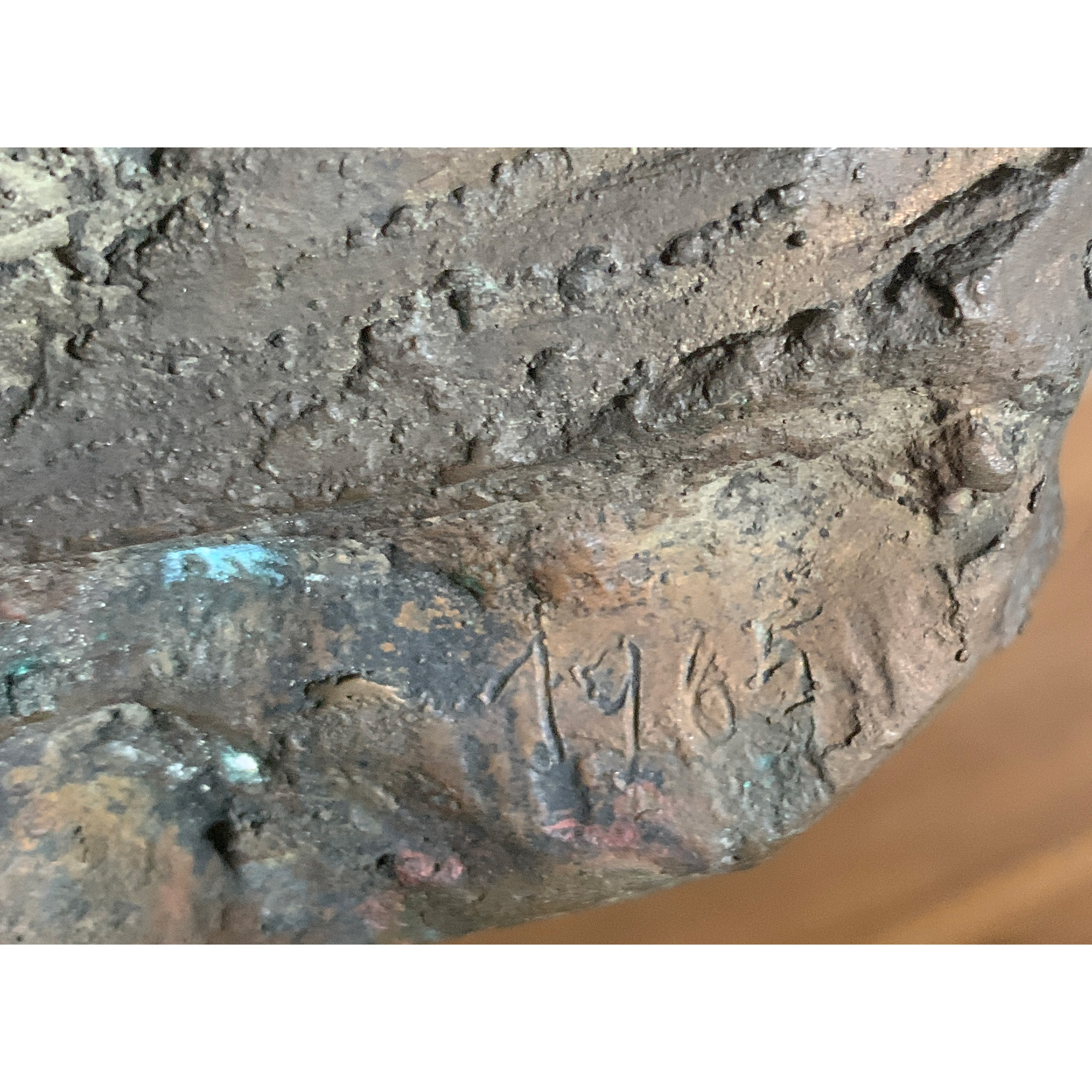 Opera accompagnata da autentica su fotografia firmata dall’artista e da autentica su foto della Galleria delle Ore firmata da Giovanni Fumagalli.