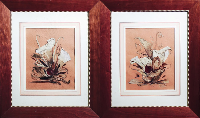COMPOSIZIONI CON FIORI - COMPOSITION WITH FLOWERS coppia di collage - a pair of collages, in cornice cm 30x24