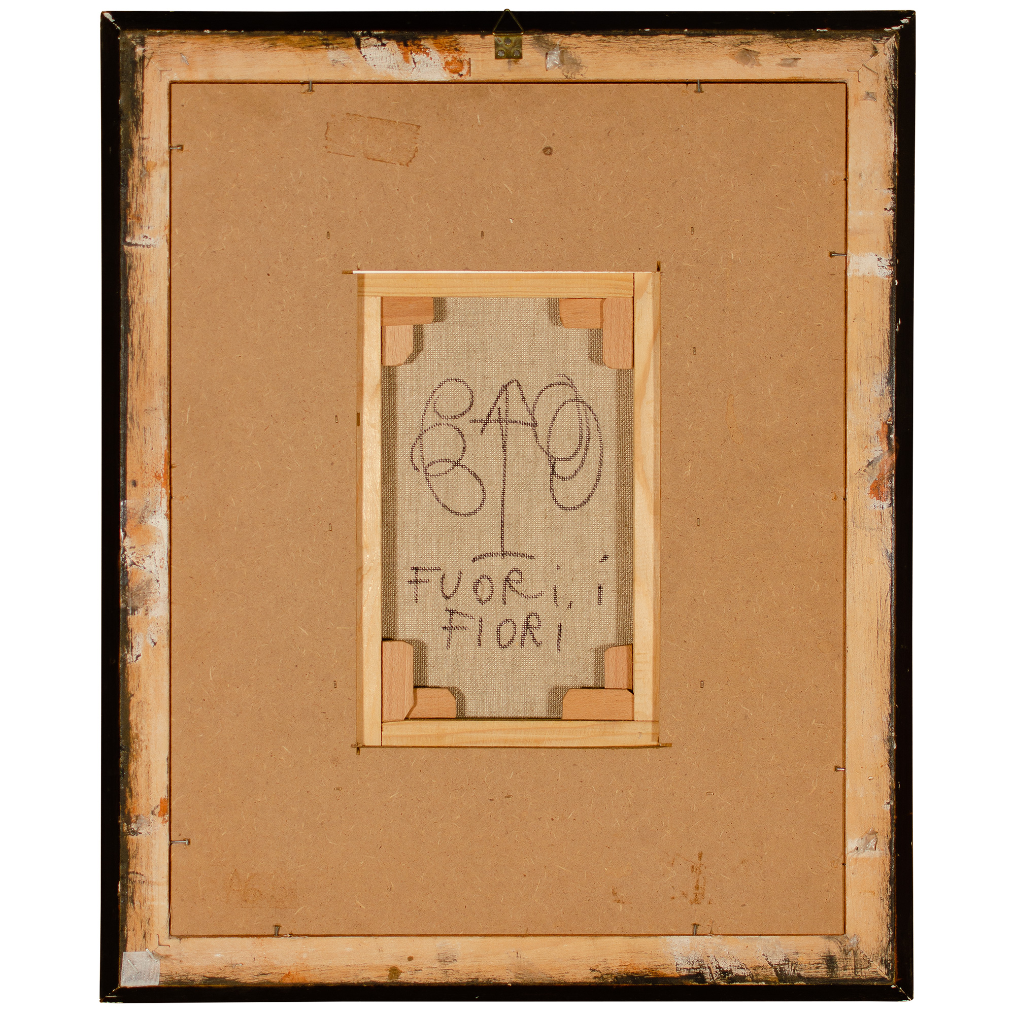 tecnica mista e collage su carta cotone intelata, cm 35x25. Siglato e titolato al verso: BC FUORI I FIORI