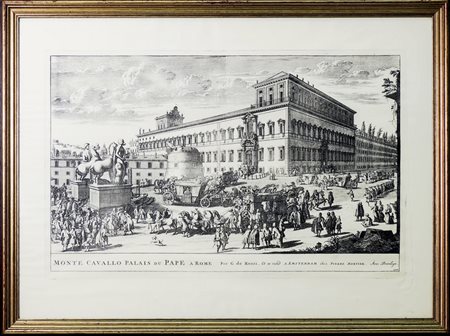 VEDUTA DI PIAZZA DEL QUIRINALE A ROMA - ROME VIEW incisione - engraving, in cornice cm 45,5x69