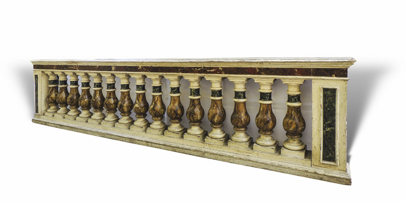 GRANDE BALAUSTRA IN LEGNO LACCATO - LARGE LACQUERED BALUSTRADE fine del XIX/inizio del XX secolo - late 19th/early 20th Century colonne tornite dipinte a finto marmo h cm 77x293x20,5