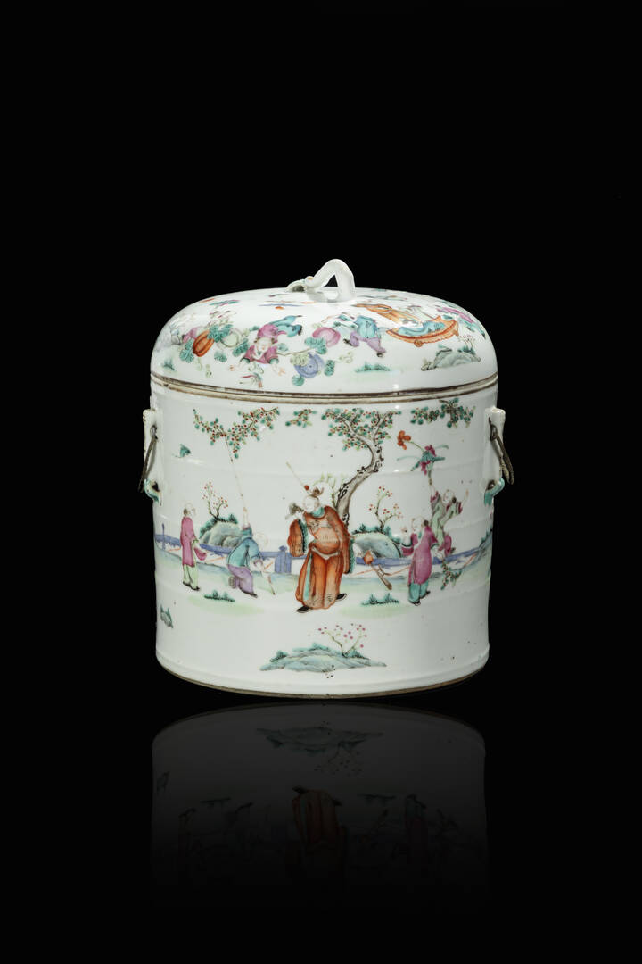 Vivandiere in porcellana Famiglia Rosa dipinta con fanciulli in festa, Cina dinastia Qing XIX Sec.