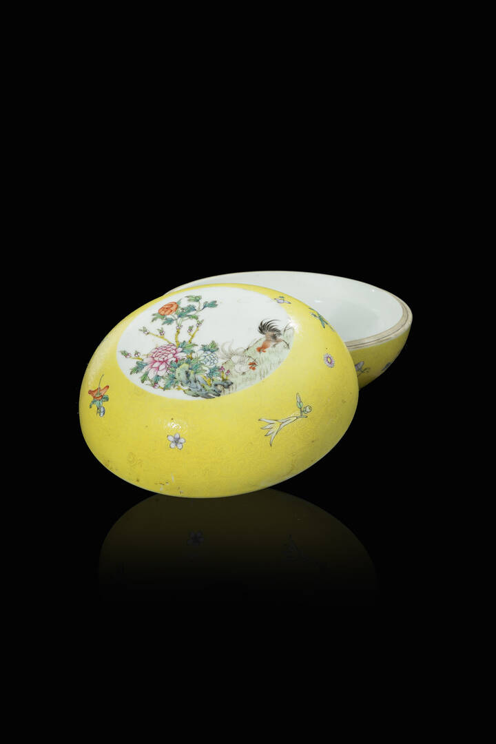 Lotto 71 | SCATOLA<BR>Scatola in porcellana Famiglia Rosa