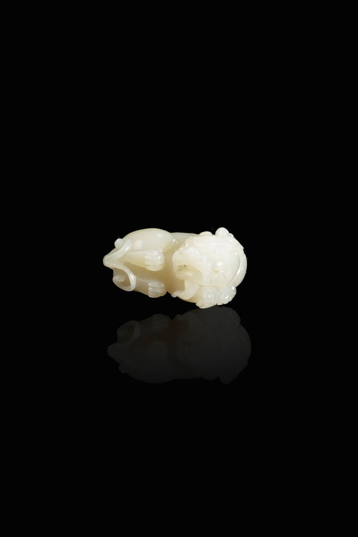 Cane di Pho in giada bianca, Cina, dinastia Qing, XIX sec