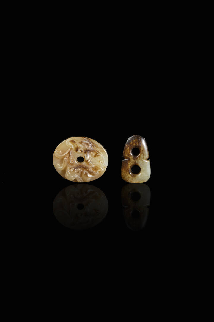 Lotto di due pendenti in giada rusted, Cina, dinastia Ming, XVII sec.