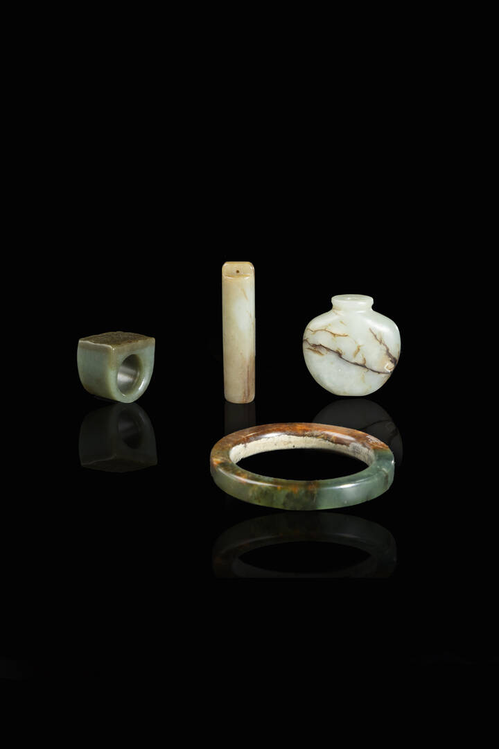 LOTTO DI QUATTRO OGGETTI<BR>Lotto composto da quattro oggetti in giada celadon