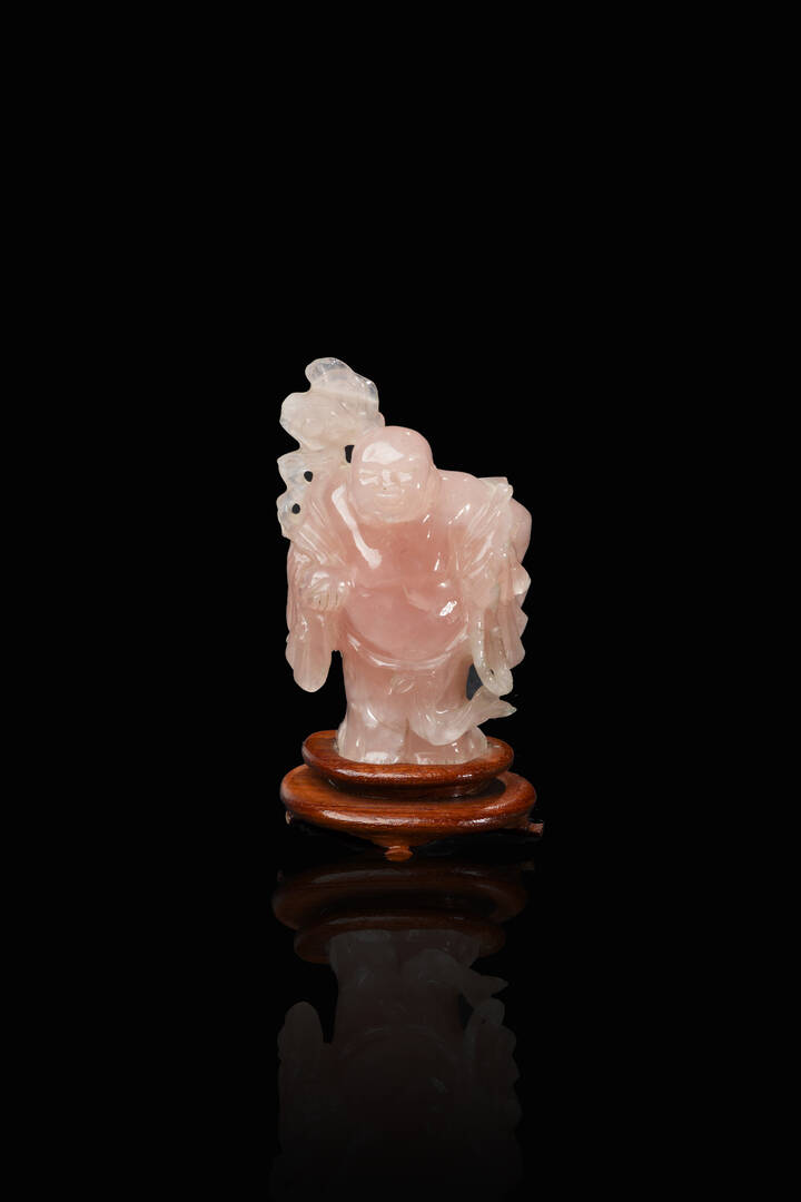 Figura di Buddha in quarzo rosa, Cina, Repubblica, XX sec.