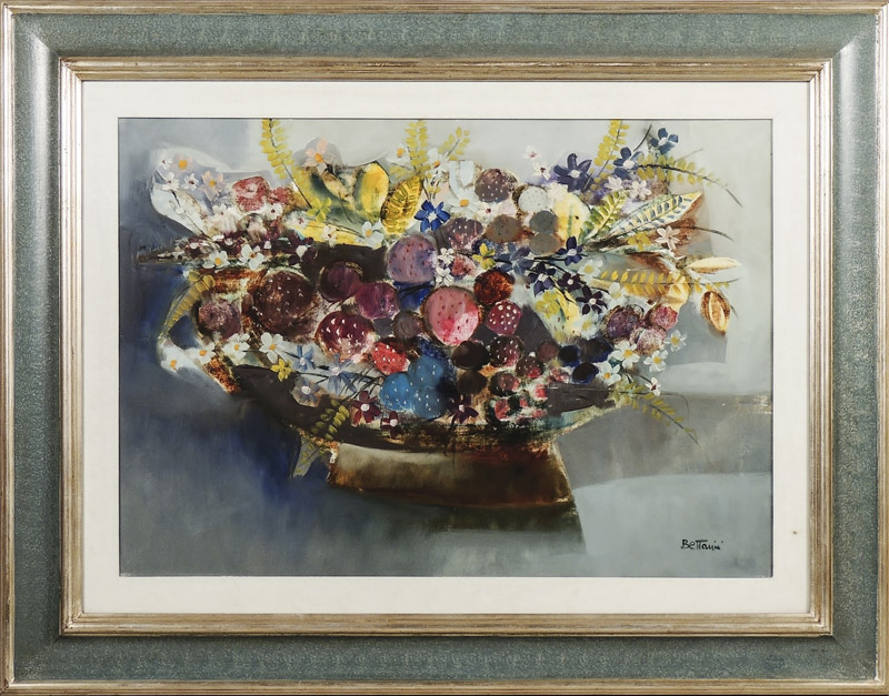 LIDO BETTARINI Cesto con fiori e frutta - Flowers and Fruits in a Basket olio su tela - oil on canvas, firmato, in cornice cm 50x70