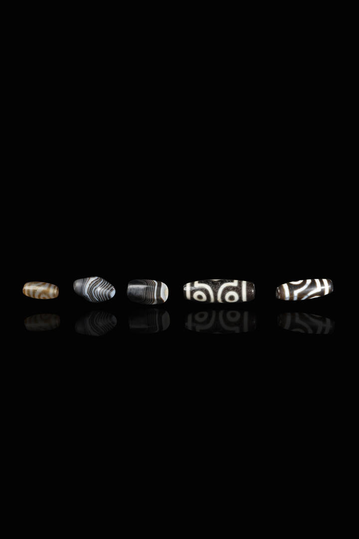 Lotto composto da cinque ciondoli Dzi, Tibet, XIX sec.