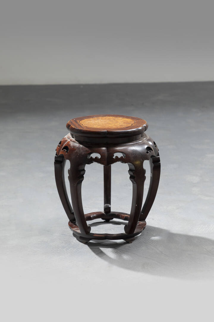 Tavolino di forma circolare con base in radica, Cina, Repubblica, XX sec.