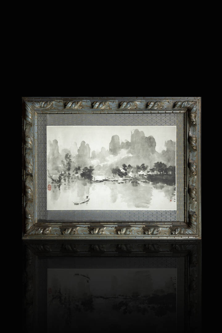 Dipinto su carta rappresentate paesaggio fluviale, Cina Repubblica XX Sec.