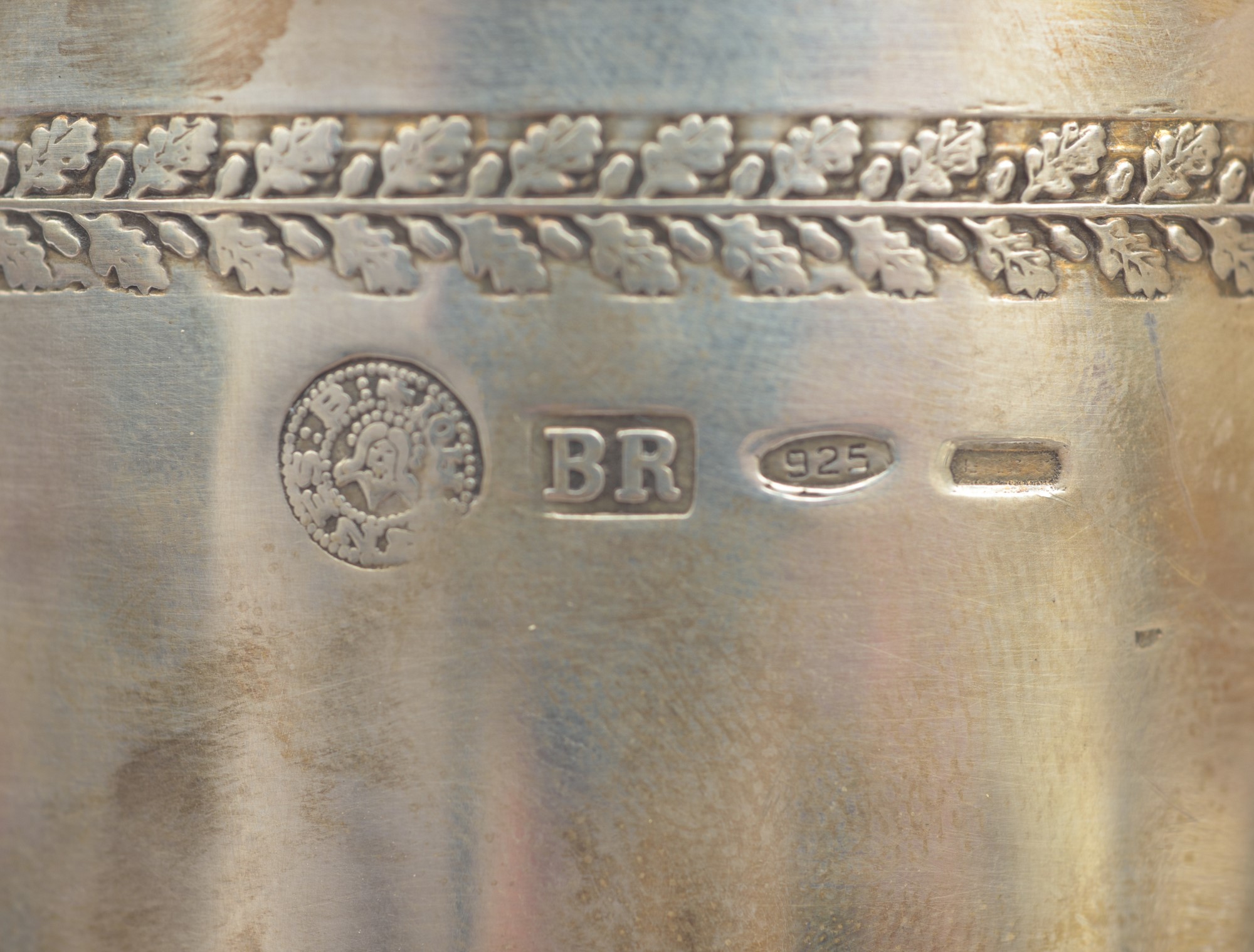 Tankard argento 925/1000 22 x 11,7 cm Brandimarte. Peso: 678 gr.