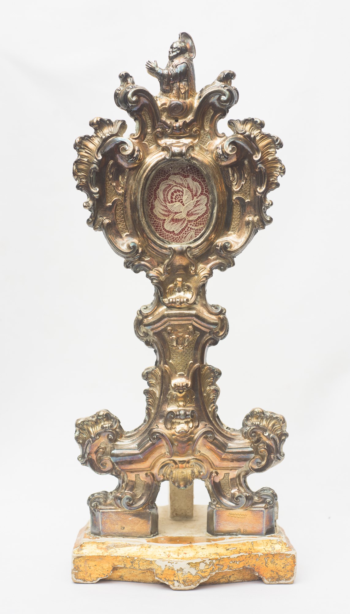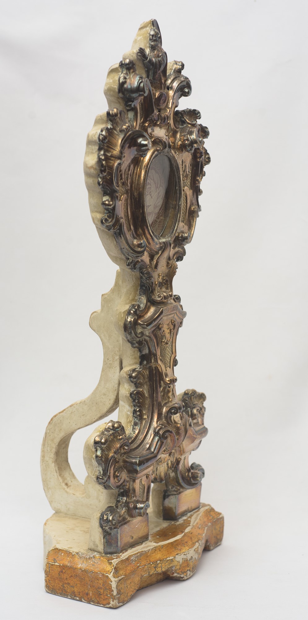 Reliquiario a ostensorio XVIII secolo 46 x 19 cm Lamina in argento 800. Base...