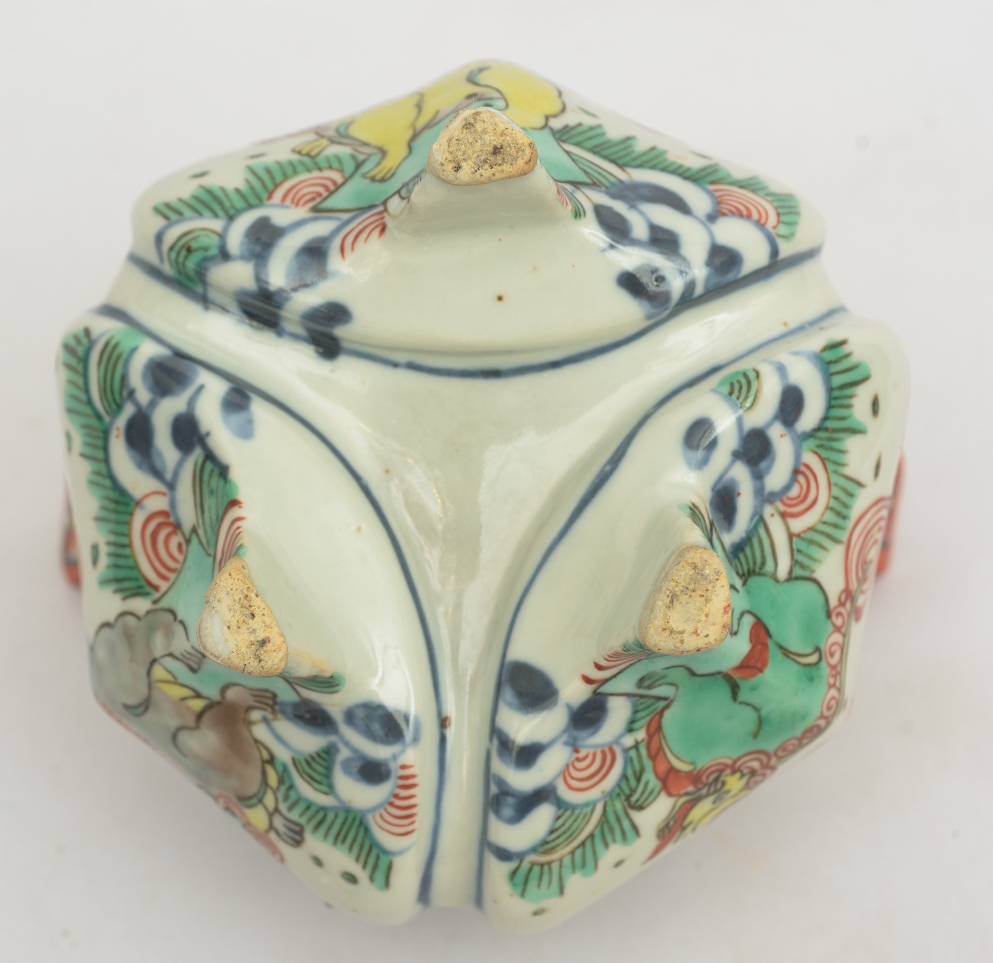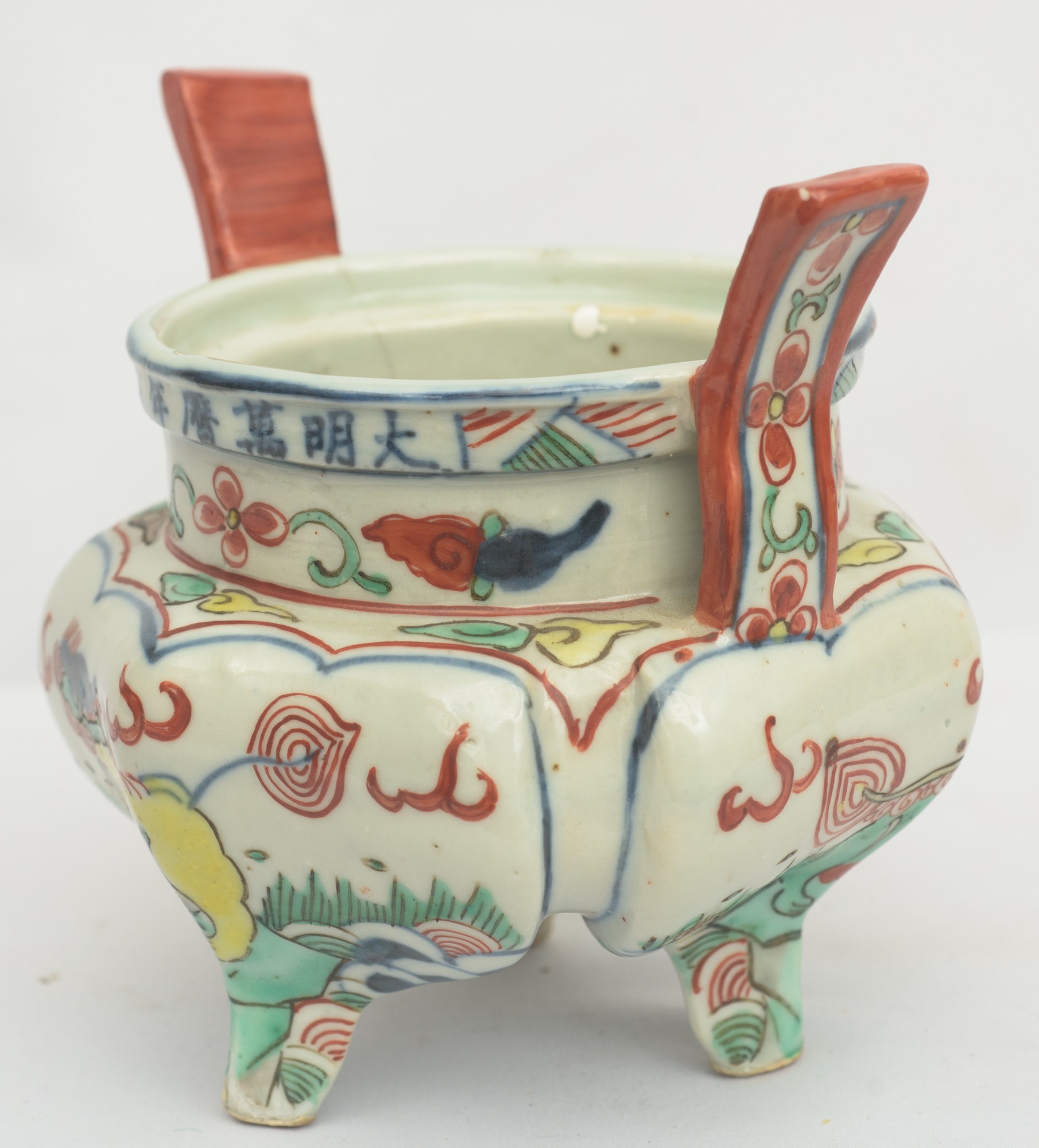 In porcellana policroma decorata a motivi vegetali ed animali. Difetti.
