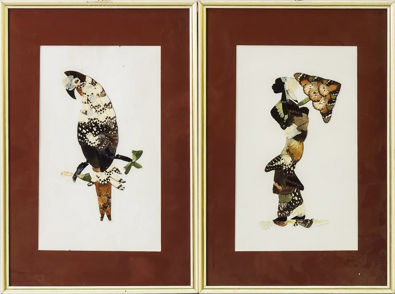 Lotto 127 | COPPIA DI COLLAGE CON ALI DI FARFALLA - PAIR OF BUTTERFLY WING COLLAGE cm 33x20