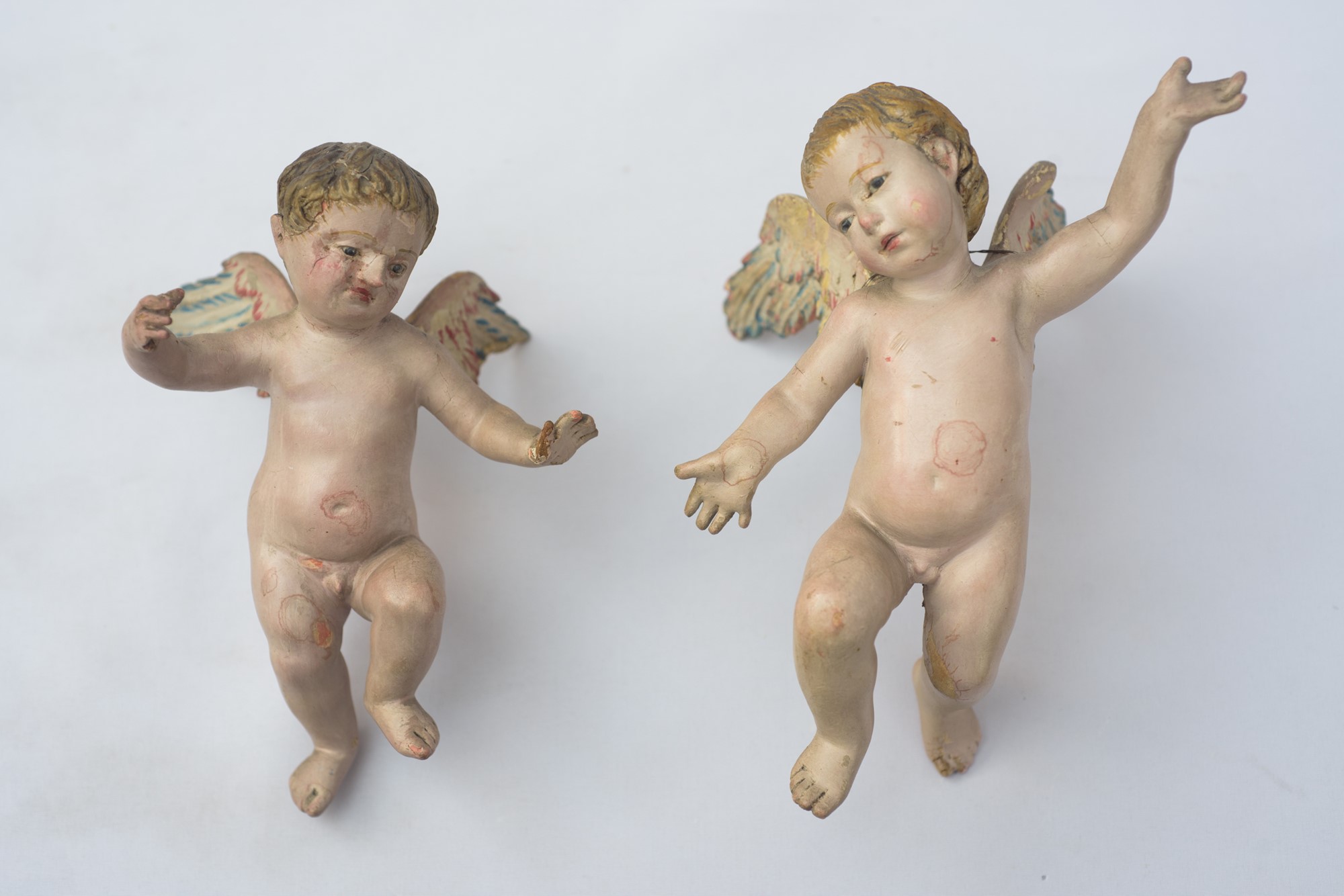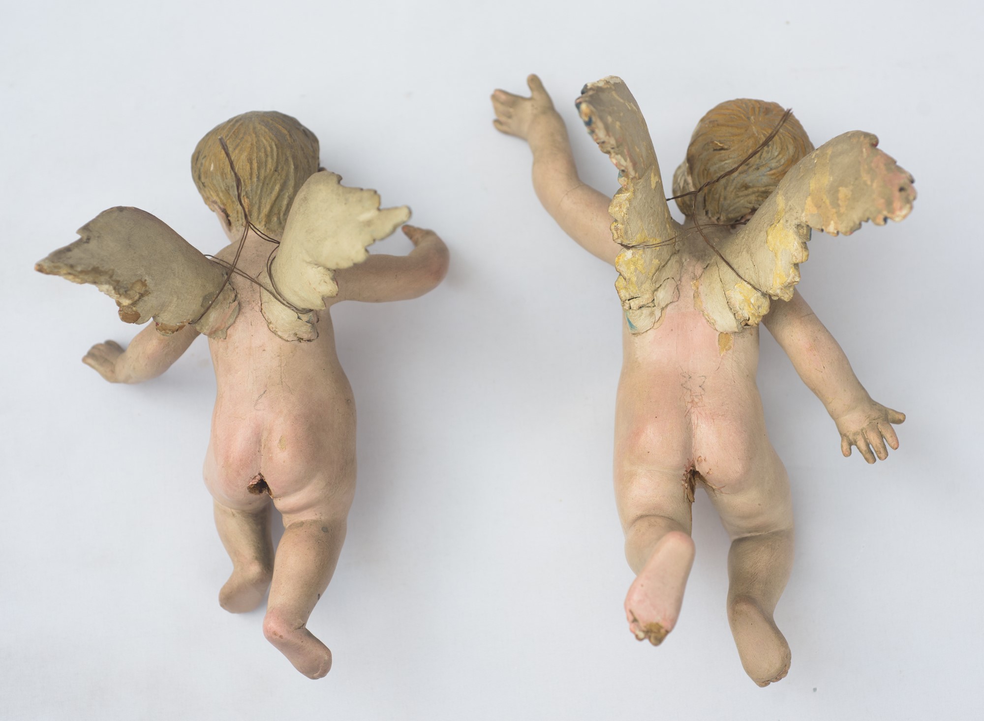 Coppia di putti alati da presepe Manifattura napoletana, XIX secolo 17 x 13 cm