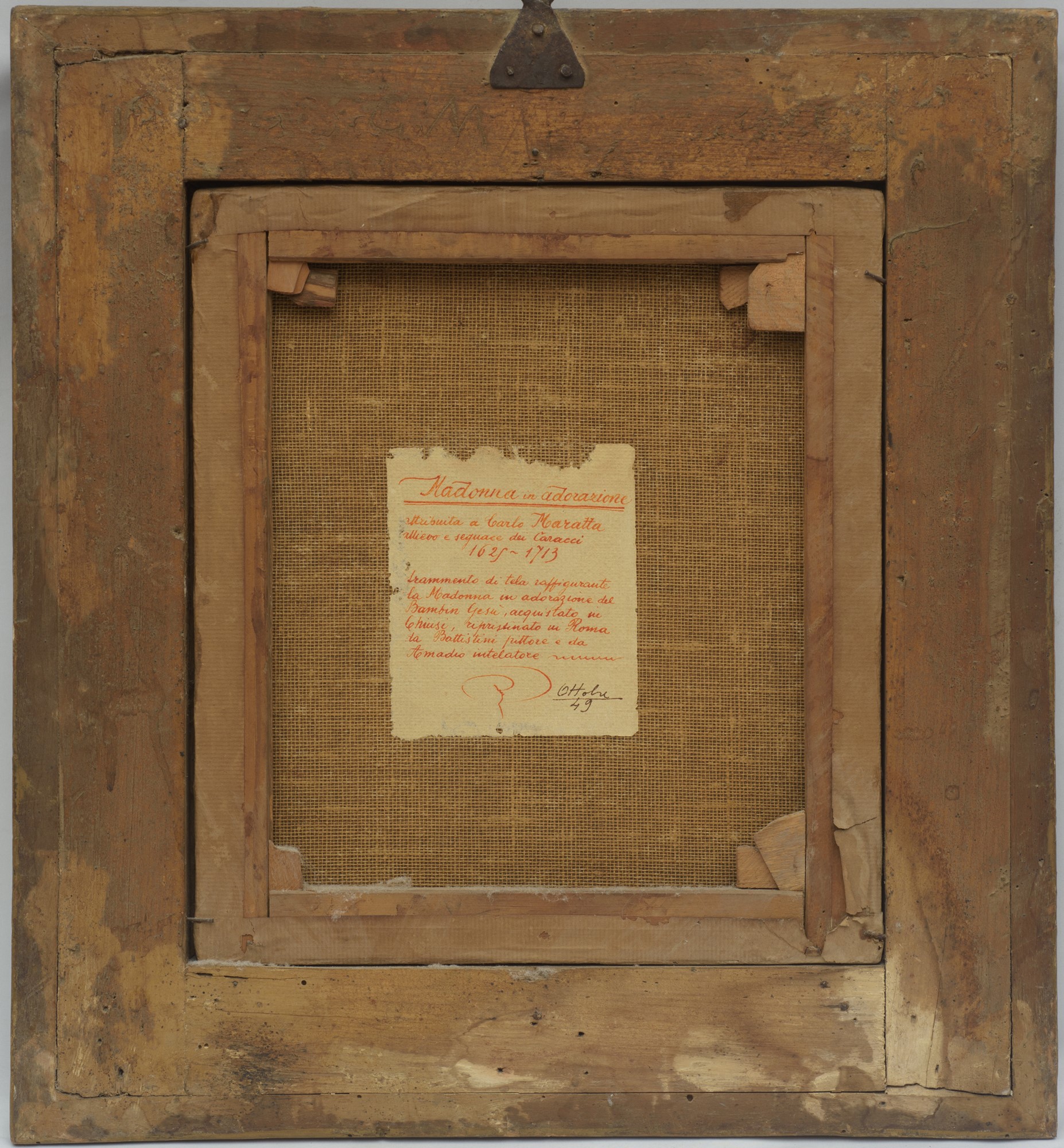 Al retro reca etichetta attributiva a Carlo Maratta. Entro cornice in legno argentato coeva.