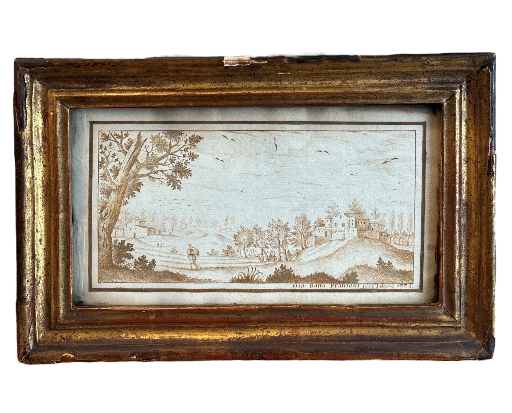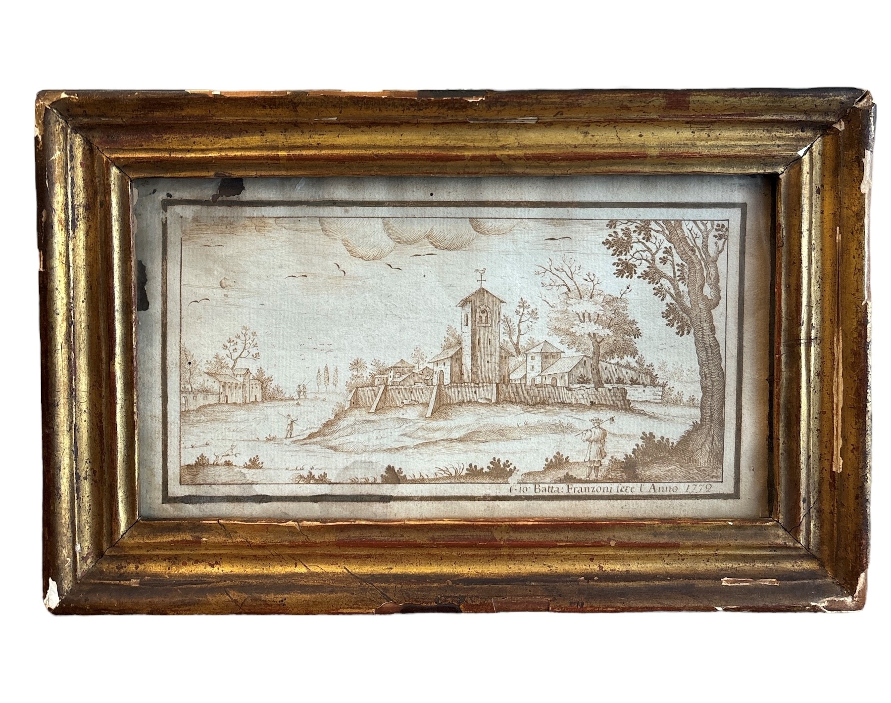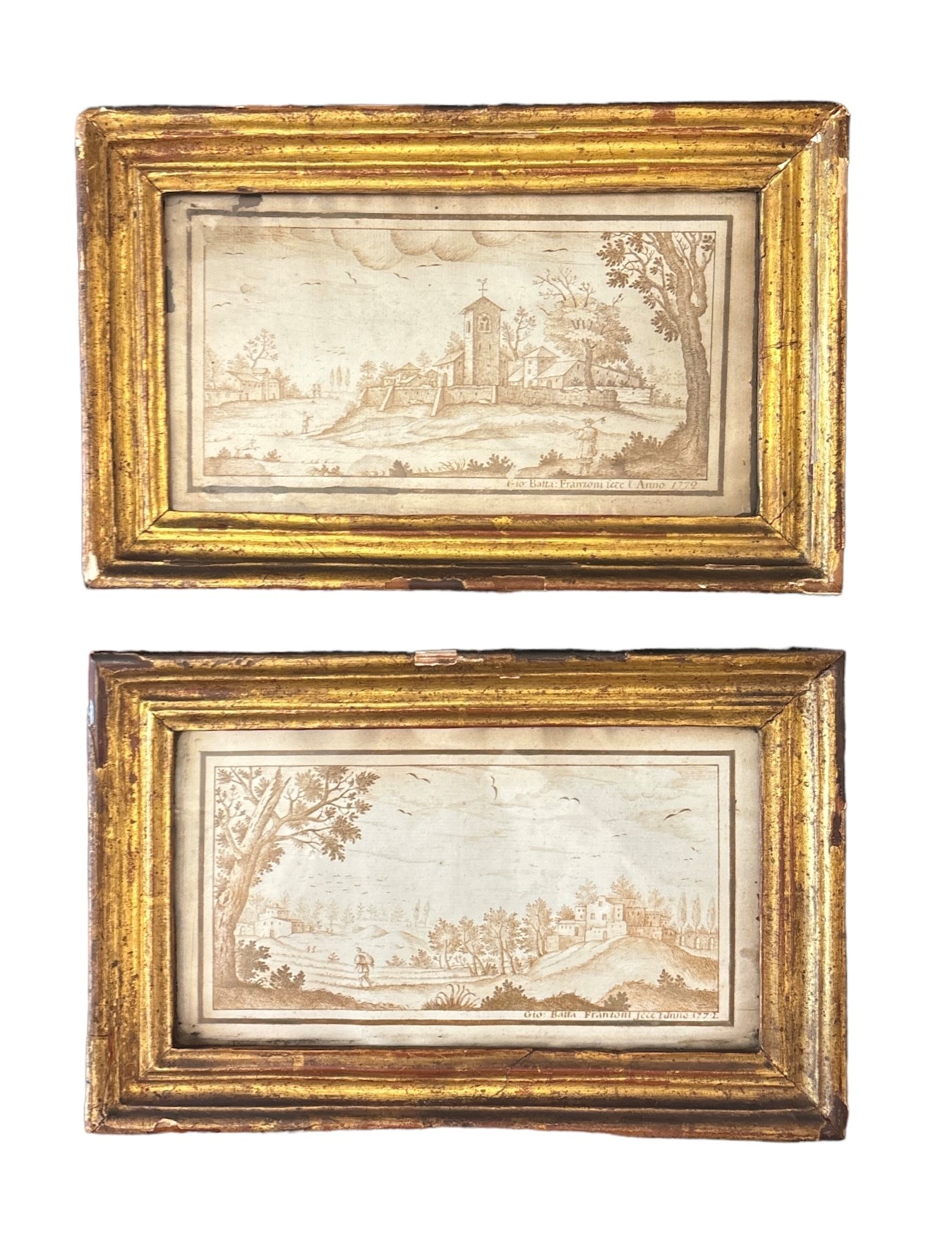 Giovanni Battista Franzoni - Coppia di paesaggi 1772 china su carta 11,50 x...