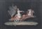 Soggetti mitologici tratti dagli affreschi di Giulio Romano a Villa Lante a Roma. Entro cornici in legno ebanizzato e dorato.