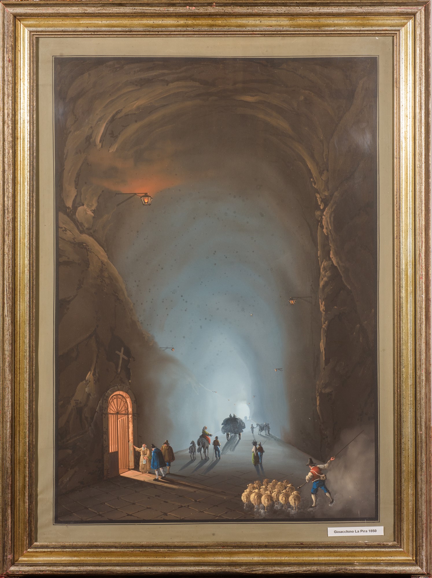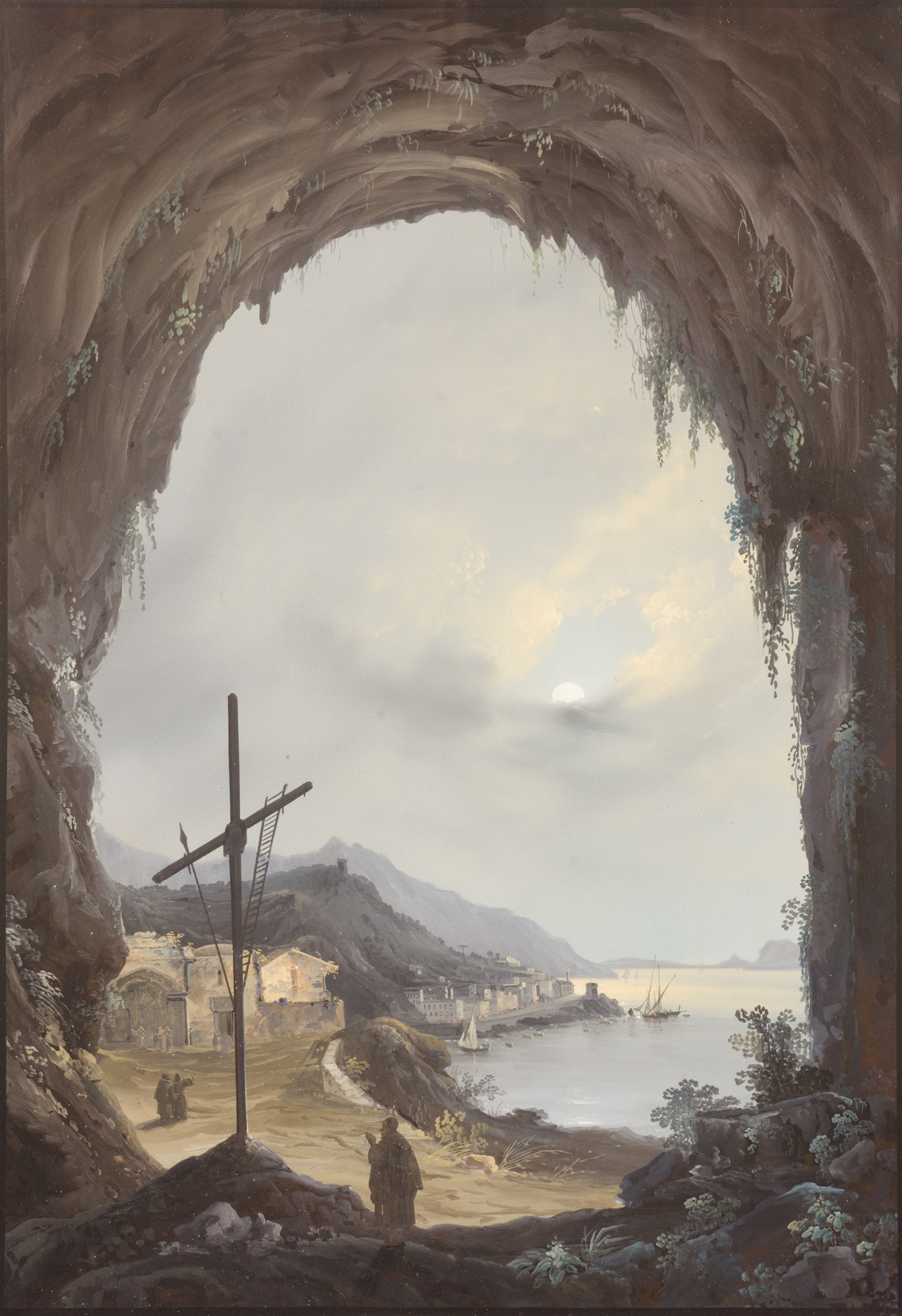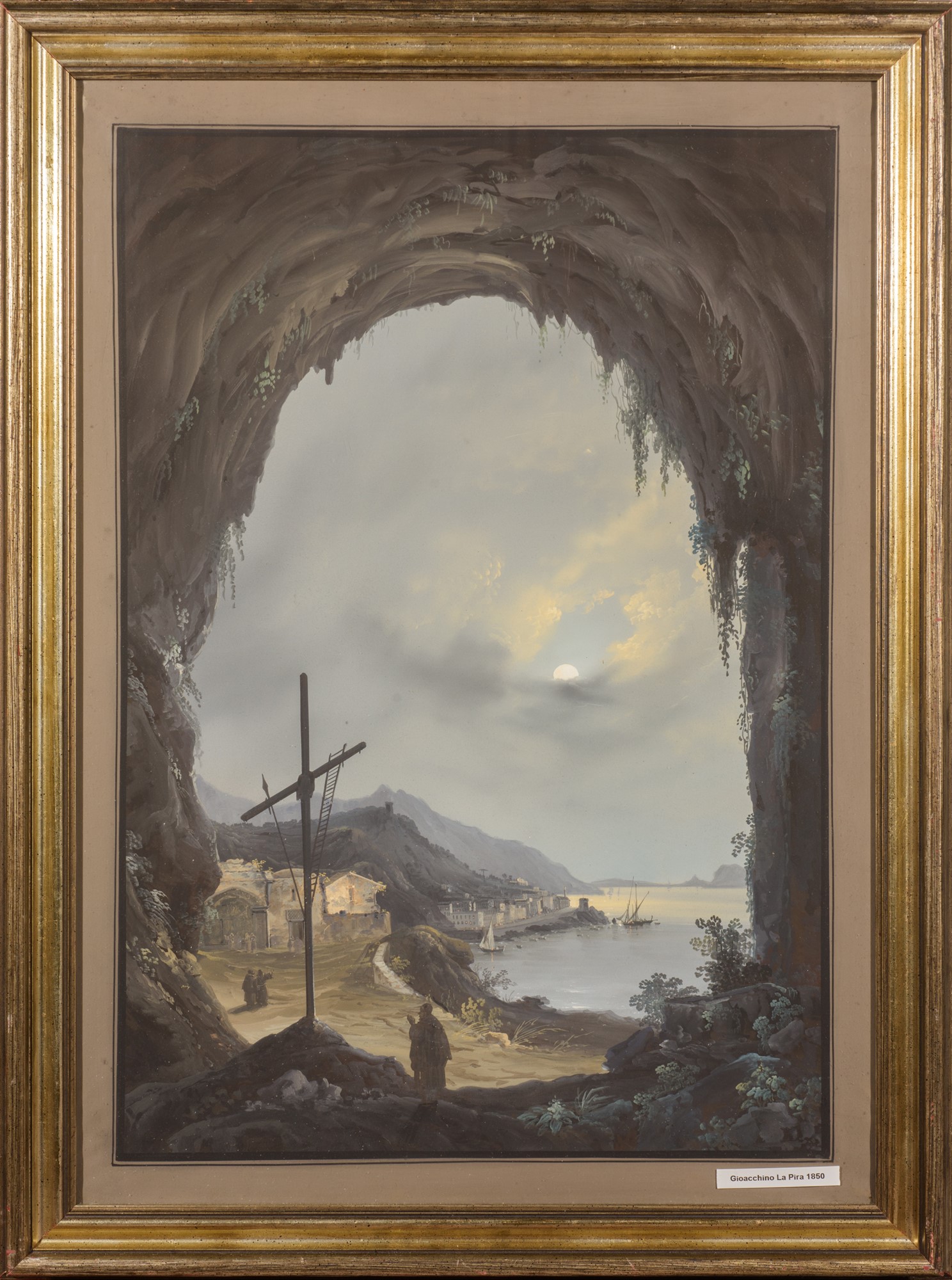 Due gouache: Veduta notturna del porto di Amalfi dalla Grotta dei Cappuccini; Grotta di Pozzuoli gouache su carta 63 x 44 cm