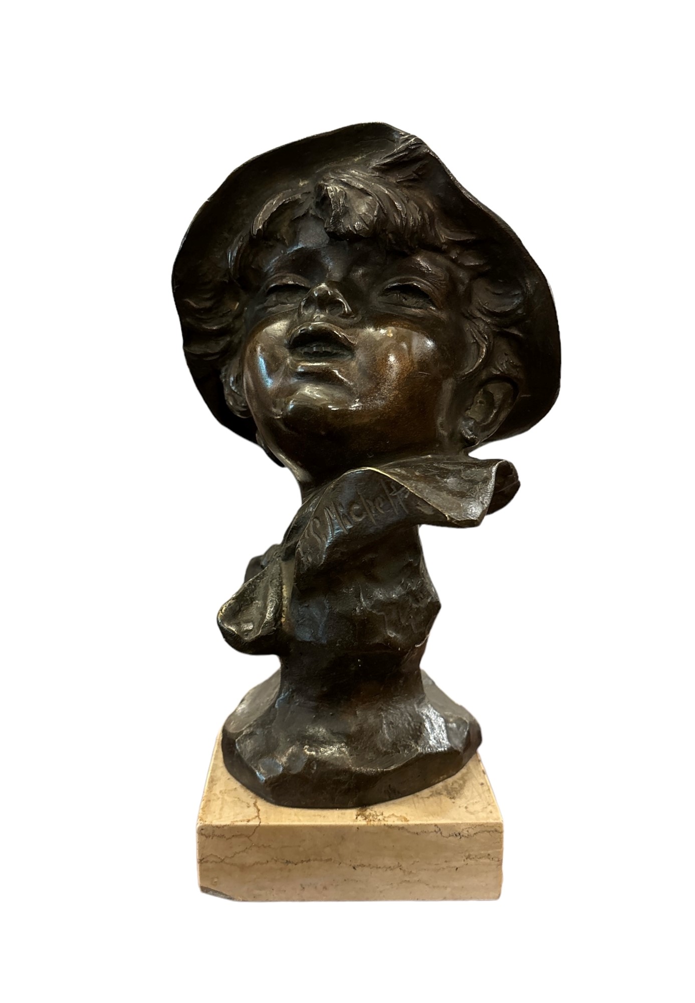 Firmato "F. P. Michetti" in basso. Con base in marmo.