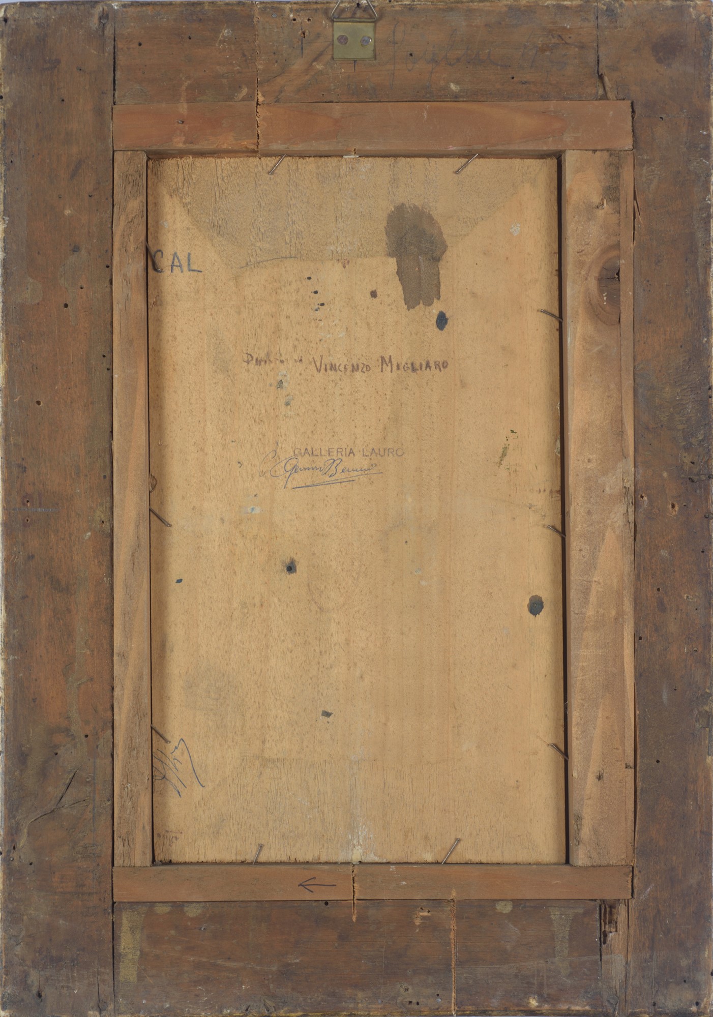 Firmato in alto a destra. Timbro "Galleria Lauro" al retro. Entro cornice dorata.