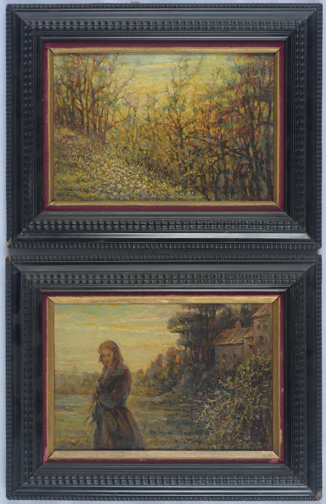 Coppia di paesaggi olio su tavoletta 15 x 22 cm