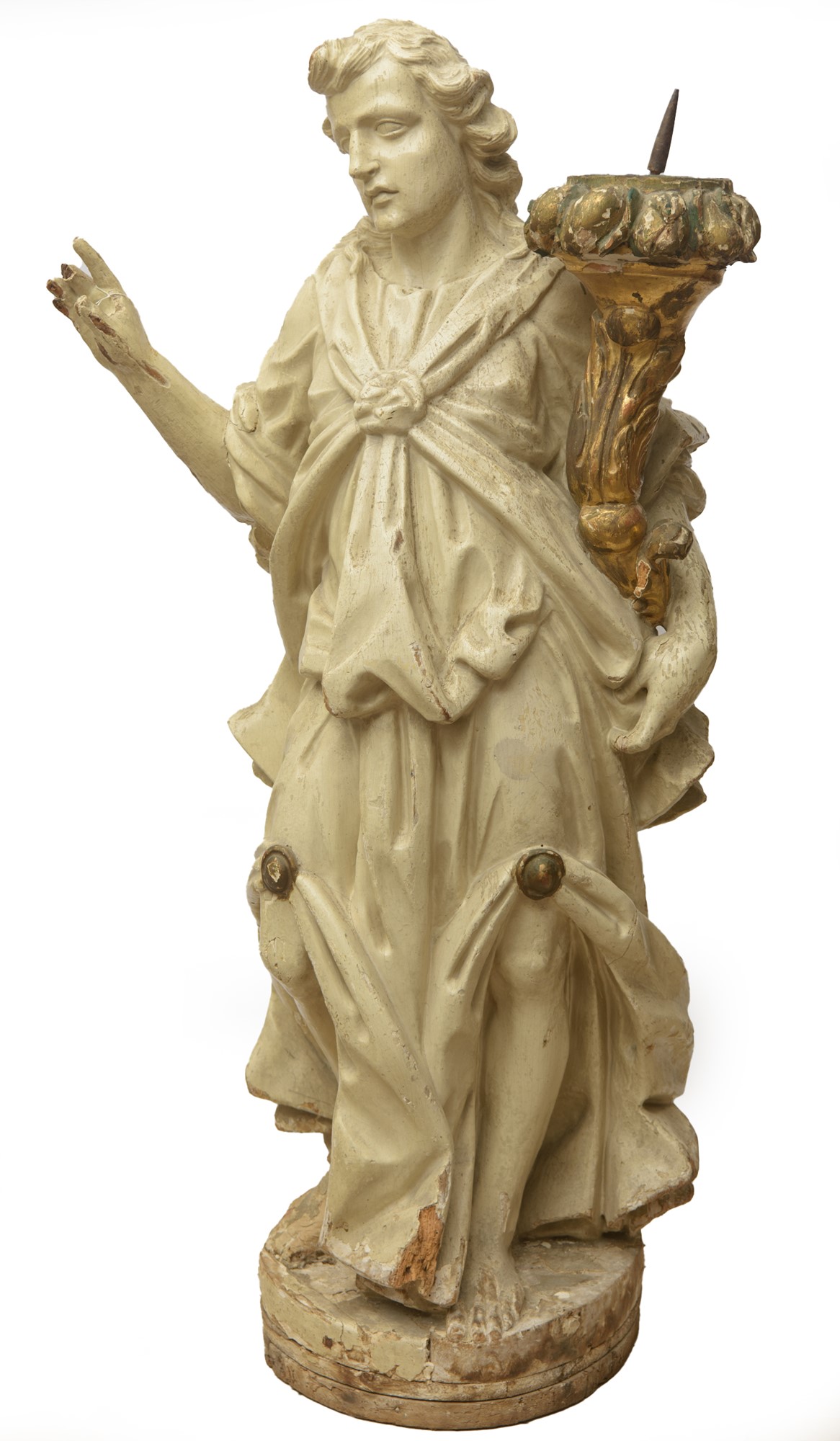Maestro genovese - Due figure reggitore metà del XVII secolo legno laccato 128 x 62 cm