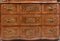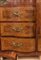 Cassettone con ribalta e alzata, in radica di noce con filettature in amaranto e bosso.Parte superiore con sette cassetti e sportello centrale; fronte sagomato. Manifattura tedesca, Luigi XIV, prime metà del XVIII secolo.