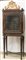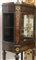a due corpi, con cassetto centrale e anta superiore a vetro. Legno ebanizzato con materiali pregiati e decorazioni e cimasa in legno dorato e intagliato. Quattro piedi rastremati e raccordati. Mancante di un vetro laterale. Restauri e mancanze.