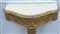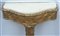 In legno scolpito e laccato, con piano in marmo bianco incassato. Restauri e mancanze.
