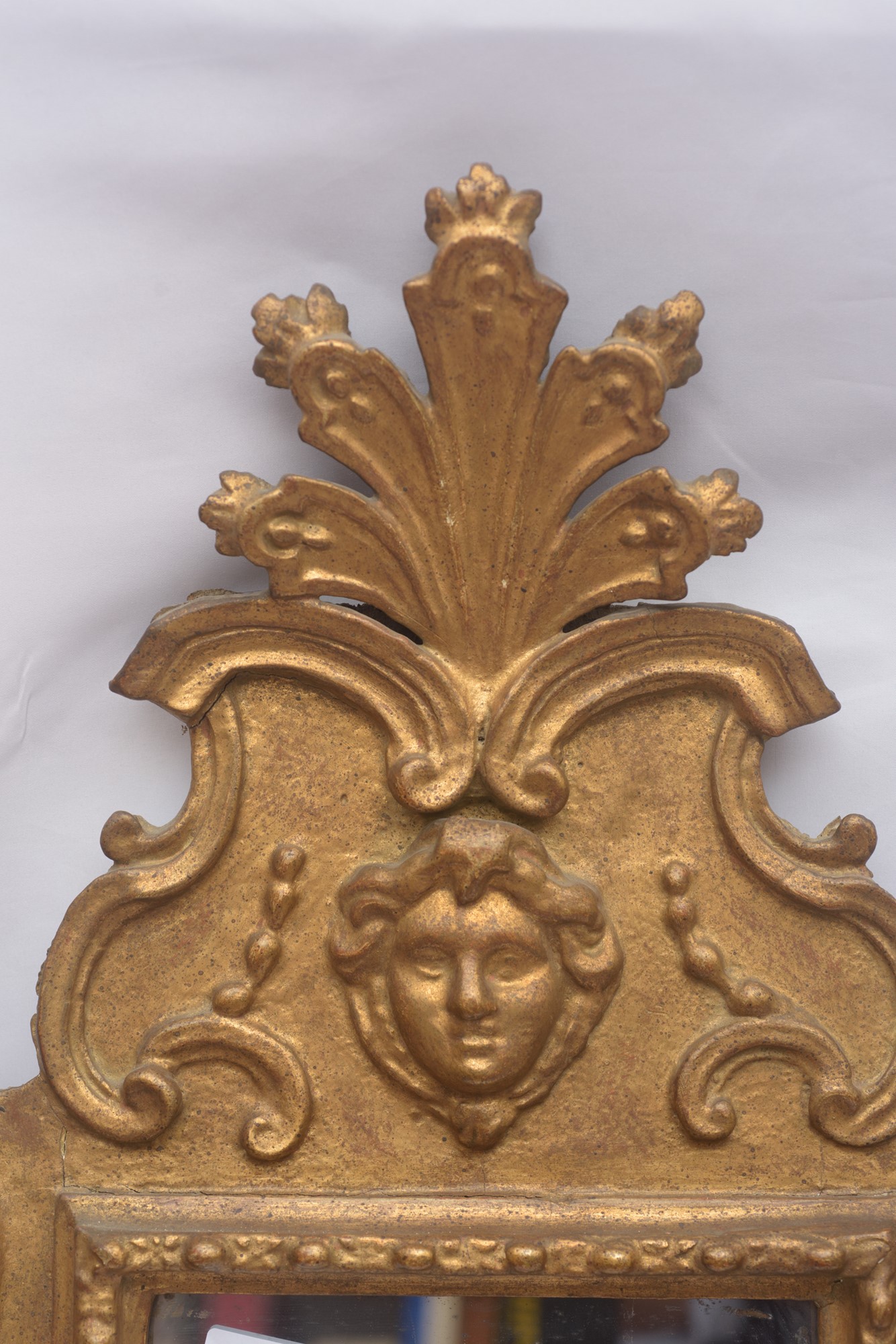 In legno intagliato e dorato. Difetti.