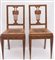 In legno di ciliegio con intarsi in bosso e legni di frutto entro riserve in pastiglia, sedute in paglia di Vienna e schienale traforato, decori a motivi floreali. Difetti.