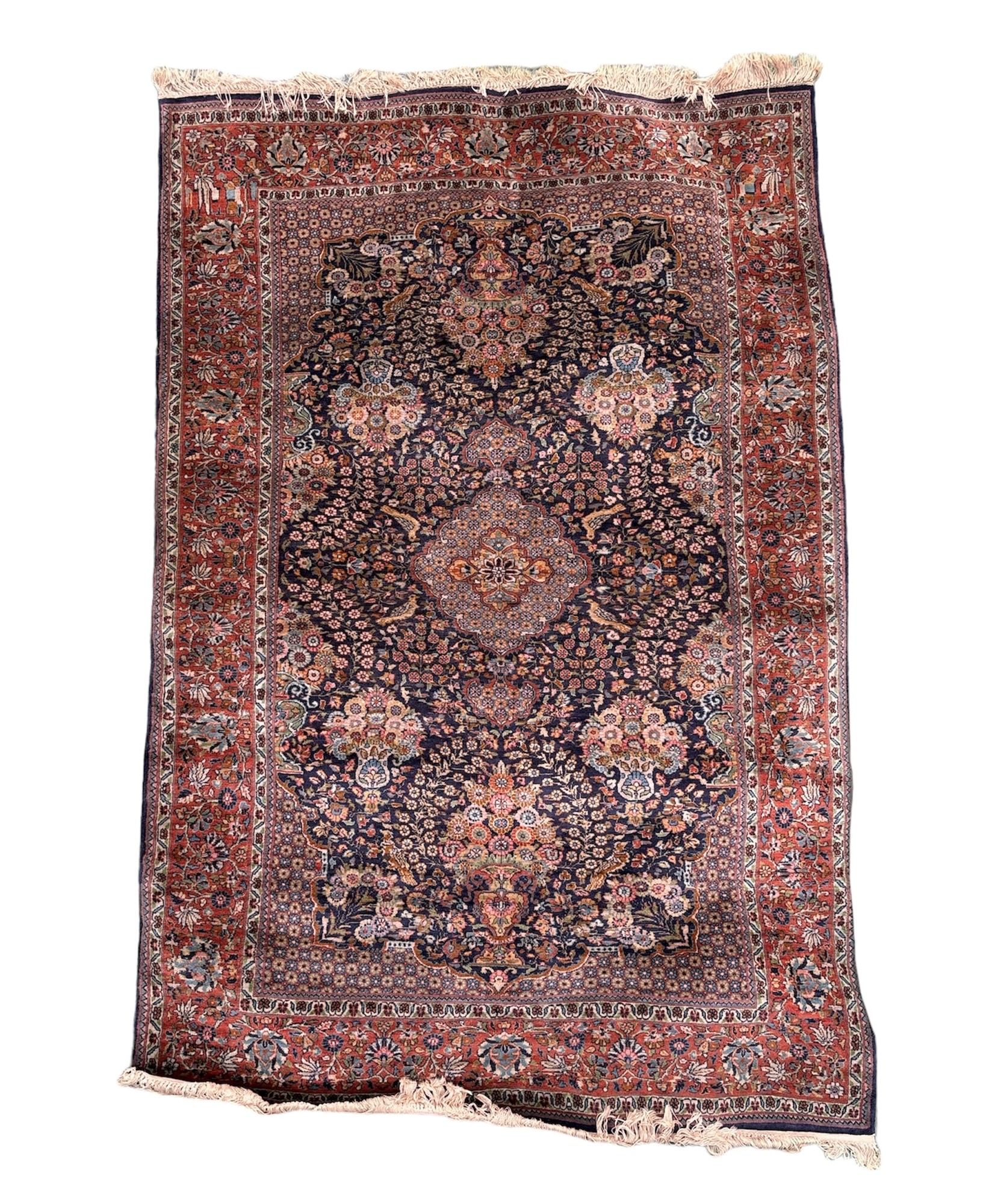 Lotto 246 | Tappeto Persiano inizio XX secolo 217 x 137 cm fondo blu con medaglioni,...